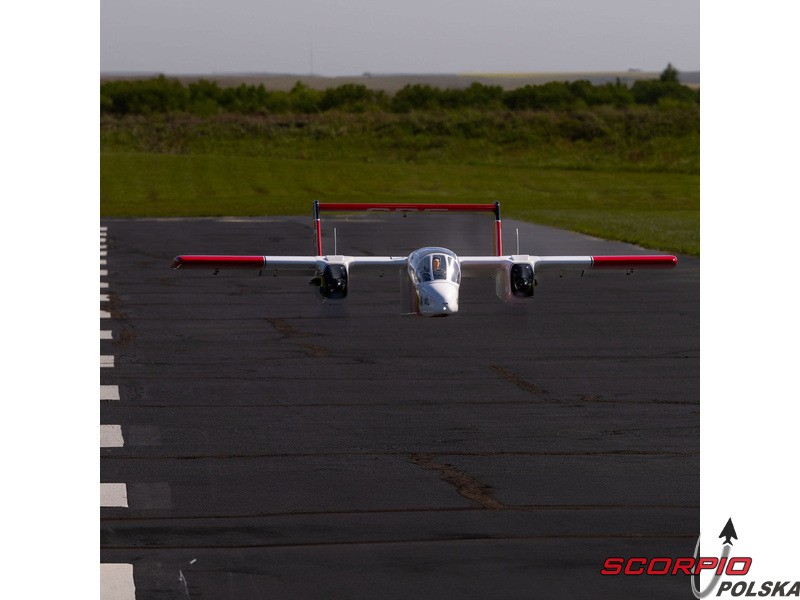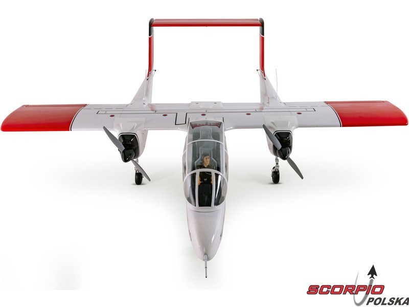 Model RC Hangar 9® OV-10 Bronco ma całkowicie drewnianą konstrukcję wykonaną z balsy i sklejki i jest pokryty naprasowywaną drukowaną folią z realistycznym makietowym kamuflażem. Fani makiet maszyn wojennych z pewnością polubią ten model, który ma niezwykły wygląd z dwoma kadłubami, dużym kokpitem i centralną gondolą pilota. Atrakcyjne kształty i rozsądne wymiary bez wątpienia sprawią, że model przyciągnie uwagę kolegów i widzów na lotnisku. Trzyczęściowe skrzydło pozwala na usunięcie tylko zewnętrznych sekcji skrzydła w celu przeniesienia środkowej sekcji, w tym kadłuba, podwozia i statecznika poziomego z wysuniętym lub schowanym podwoziem. Można też odkręcić kilka dodatkowych śrub i wtedy wszystkie części mogą być transportowane i przechowywane oddzielnie. Do napędu zalecany jest silnik spalinowy o pojemności 20 cm3 lub odpowiedni napęd elektryczny 6S.