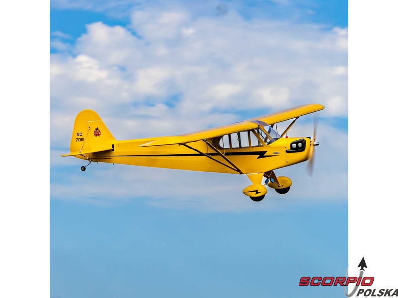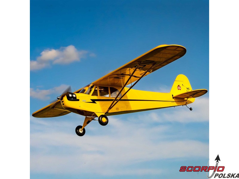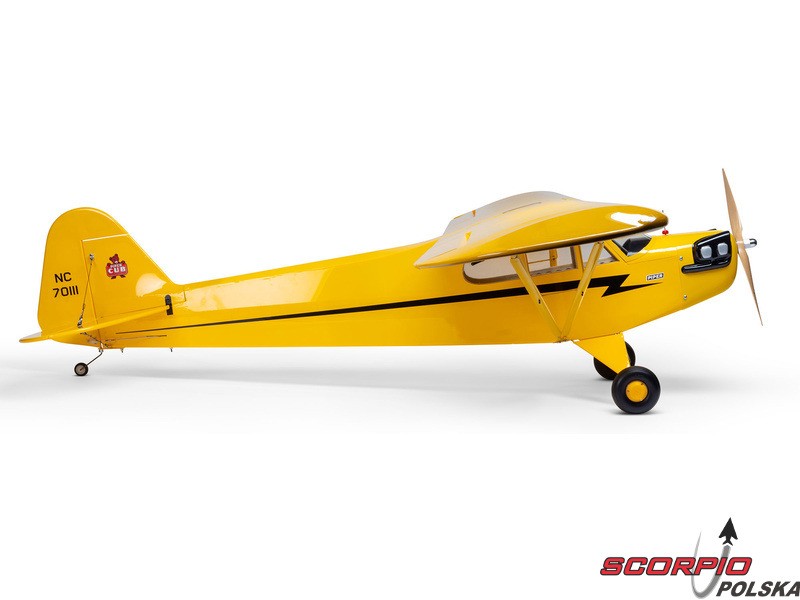 Model RC J-3 Cub o rozpiętości skrzydeł 2,1 m oferuje klasyczne i komfortowe wrażenia z latania dużym modelem. Model ma lekką i solidną całkowicie drewnianą konstrukcję z pokryciem folią UltraCote®. Wersja ARF - należy zainstalować własną elektronikę i napęd (silnik spalinowy 10cc lub bezszczotkowy silnik elektryczny).