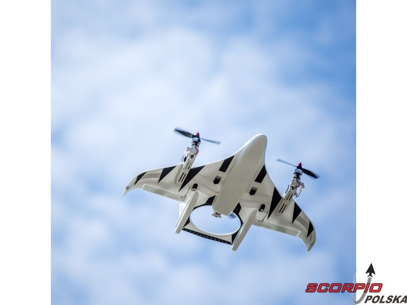 Wykonanie przejścia pomiędzy zawisem a lotem samolotu jest tak samo proste jak przełączenie przełącznika. Jednostka sterująca płynnie obraca dwa silniki umieszczone na skrzydle do właściwego położenia i aktywuje tylny silnik w zależności od trybu lotu.