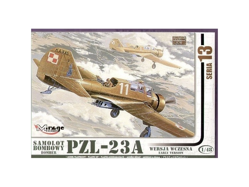 Model do sklejania wiernie odwzorowujący PZL-23A 'KARAŚ' Samolot Bombowy. Od jesieni 1932 powstały trzy prototypy oznaczone symbolami: PZL - 23/I, PZL - 23/II i PZL - 23/III. Badania wytrzymałościowe i statyczne PZL - 23/I zakończono w drugiej połowie 1933 r. Prototyp wzbił się w powietrze pod koniec 1934 r. W kolejnych wersjach doświadczalnych dokonywano wielu poprawek takich jak: likwidacja wibracji tylnej części kadłuba i usterzenia wysokości, wzmocnienie konstrukcji płata, poprawa widoczności z fotela pilota poprzez zwiększenie przeszklenia kabiny, opuszczenia o 10cm miejsca mocowania silnika, zastosowanie nowego pierścienia o mniejszym współczynniku Cx, zlikwidowano w kadłubie komorę bombową, przenosząc wyrzutniki pod skrzydła i pod kadłub i wiele innych. Łącznie wprowadzono ponad 100 zmian i usunięto kilkaset usterek.