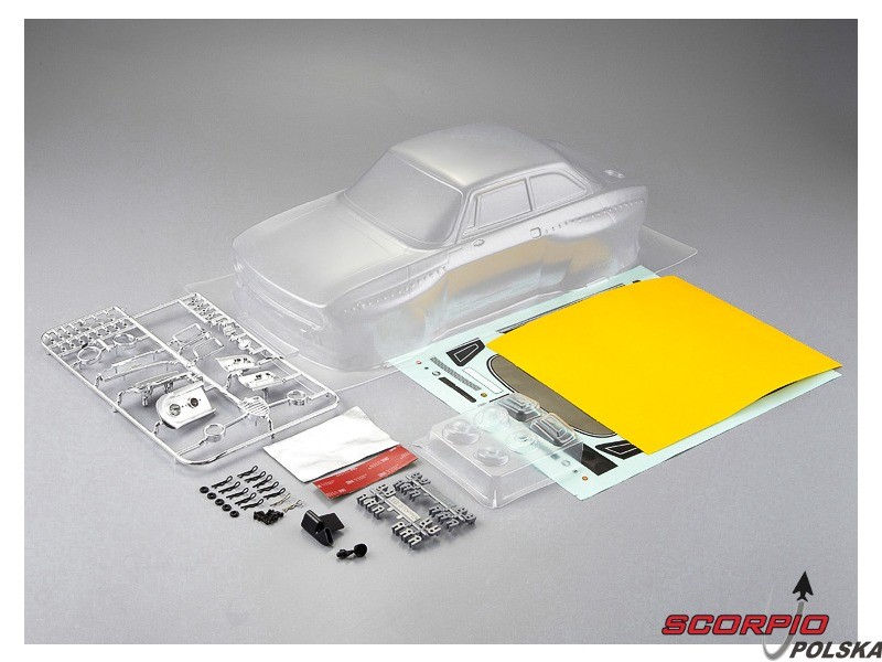 Niepomalowana karoseria Alfa Romeo 2000 GTAm z akcesoriami. Karoseria nie ma wywierconych otworów. W zestawie są również maskownice okien, zestaw chromowanych części (szkła lusterek, rury wydechowe oraz reflektory), zestaw czarnych plastikowych elementów (lusterka, ...), jak również inne akcesoria (zestaw śrub, dwustronna taśma klejąca,…).