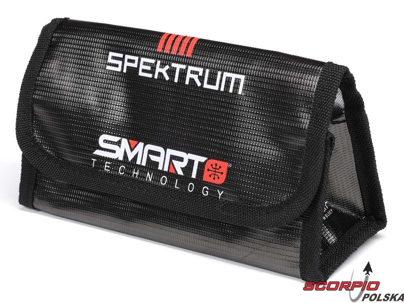 Spektrum Smart Safe LiPo Pak – etui ochronne do bezpiecznego przechowywania i ładowania akumulatorów LiPol. Wymiary: 180 x 70 x 70 mm.