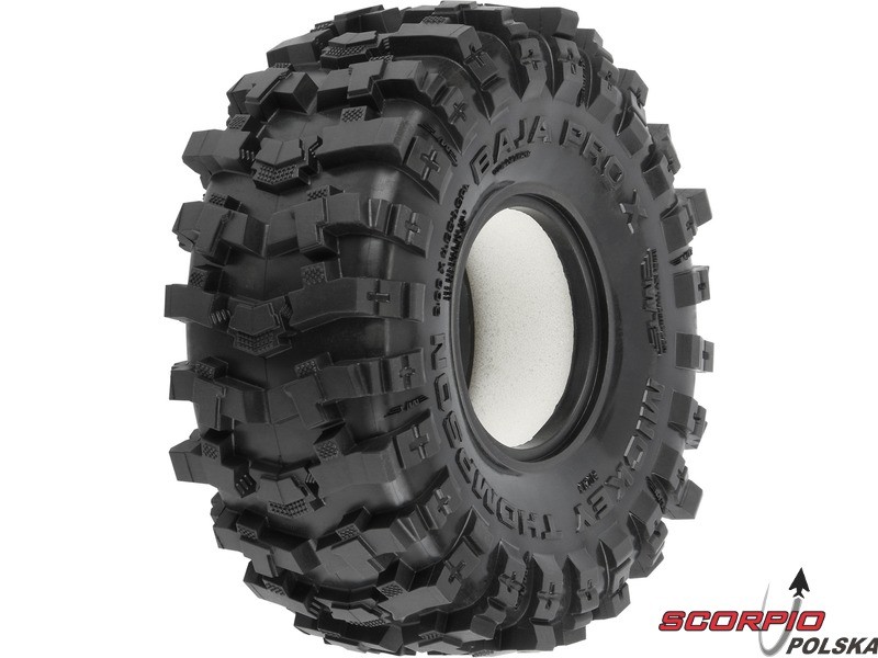 Opony Pro-Line 1.9" Mickey Thompson Baja Pro X Predator Crawler (2 sztuki w opakowaniu) są przeznaczone do modeli samochodów RC Rock Crawler 1:10, np. Capra™ lub SCX-10™. Mieszanka opony G8 Predator (super miękka). Wymiary 123 mm x 51 mm. Pasują do felg 1,9”. Wkładka piankowa.