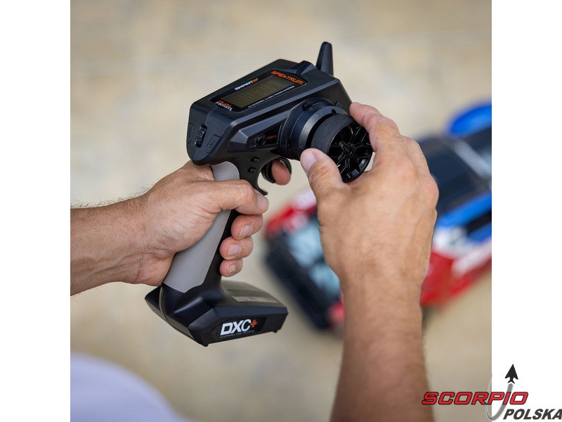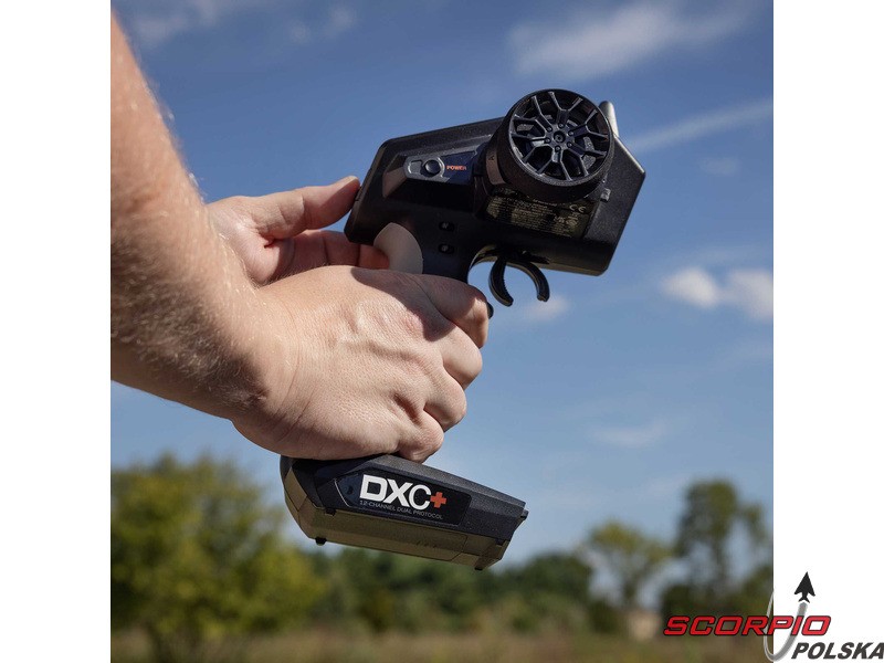 Nadajnik Spektrum DXC+ to doskonałe, przemyślane rozwiązanie dla samochodów RC, łodzi i modeli, dla których oferuje szeroki wachlarz możliwości. 12 kanałów proporcjonalnych umożliwia sterowanie zaawansowanymi funkcjami modeli, np. oświetleniem, skrzynią biegów, blokadami mechanizmu różnicowego, niezależnym sterowaniem hamulcami, skręcaniem tylnych kół lub oddzielnym sterowaniem przednimi kołami. Zaletą jest intuicyjny software i programowanie, poruszanie się po menu jest proste dzięki przyciskowi przewijania. Dołączone gniazdo USB umożliwia łatwą aktualizację oprogramowania sprzętowego i kompatybilność z symulatorem VRC Racing. Dzięki technologii DSMR+ 2,4 GHz o dużej elastyczności częstotliwościowej oraz nowej technologii STL nadajnik może być używany w różnych typach modeli, w tym łodziach. Jego zasięg i reakcja, zwłaszcza w obciążonym środowisku 2,4 GHz, są doskonałe.