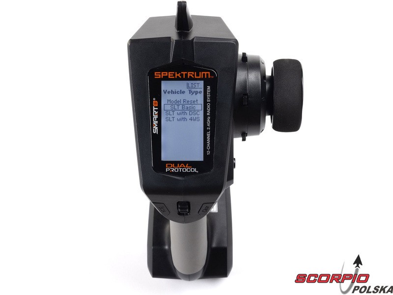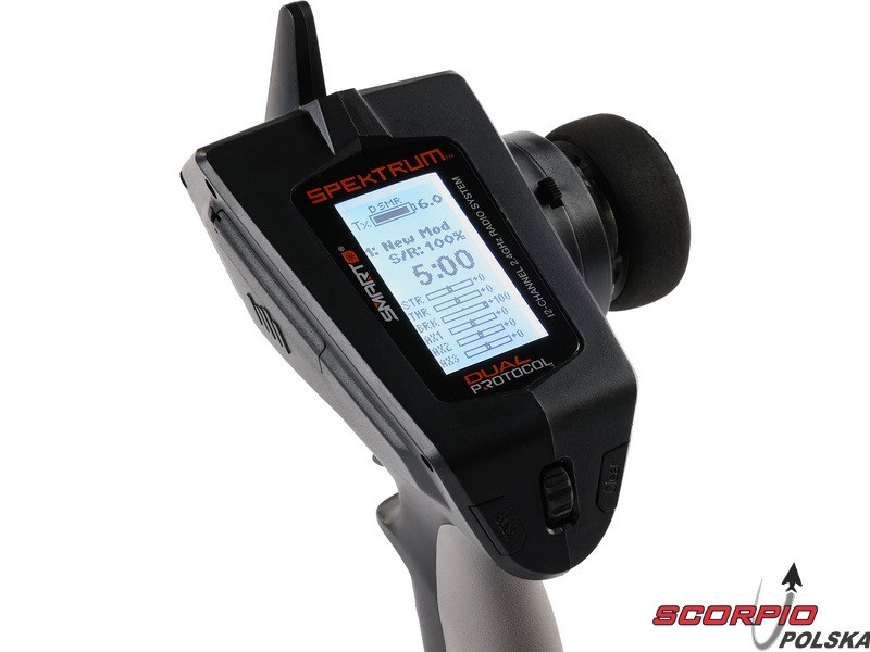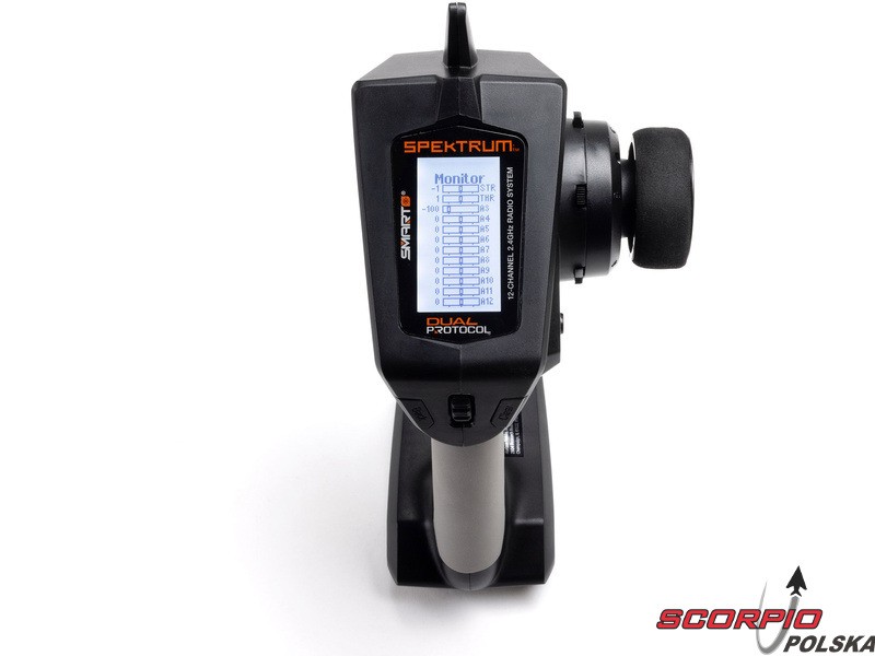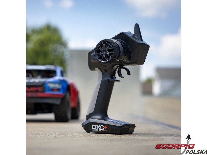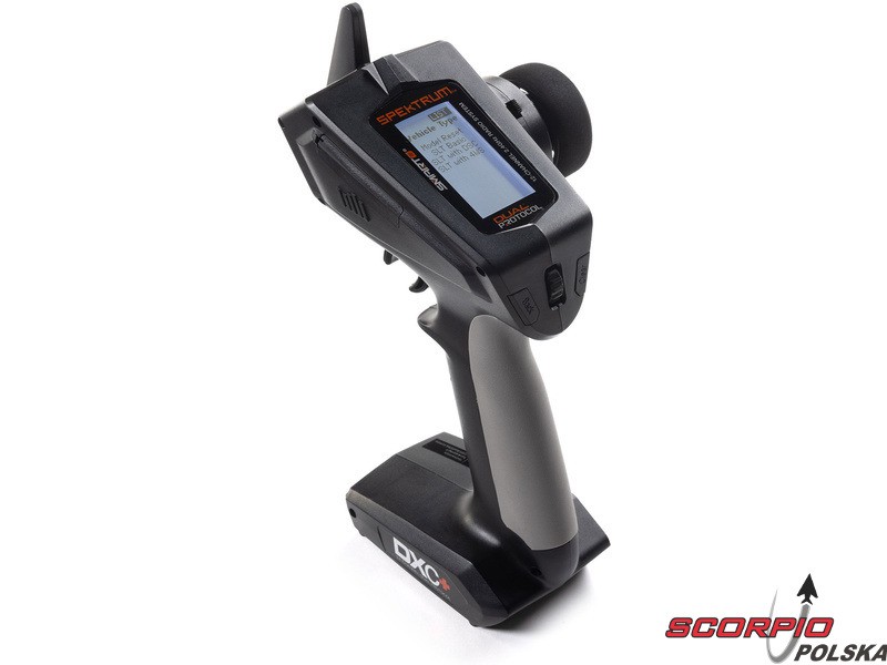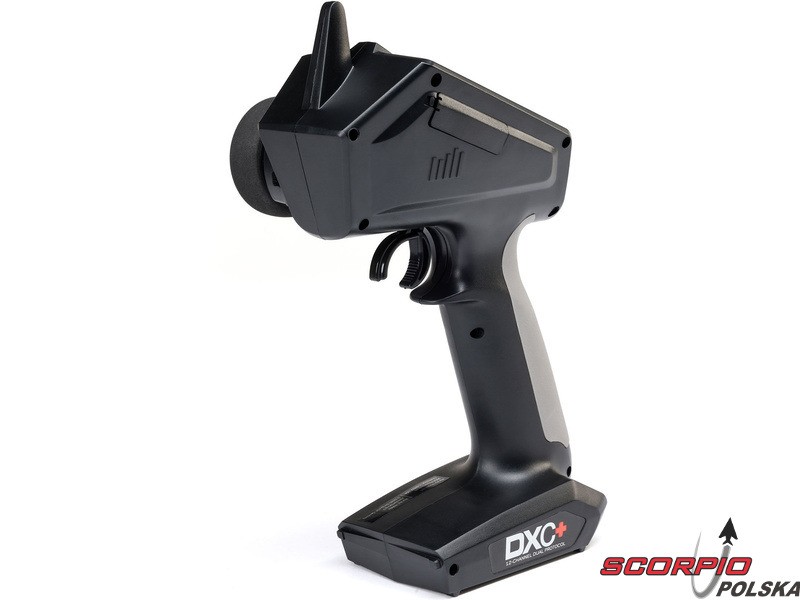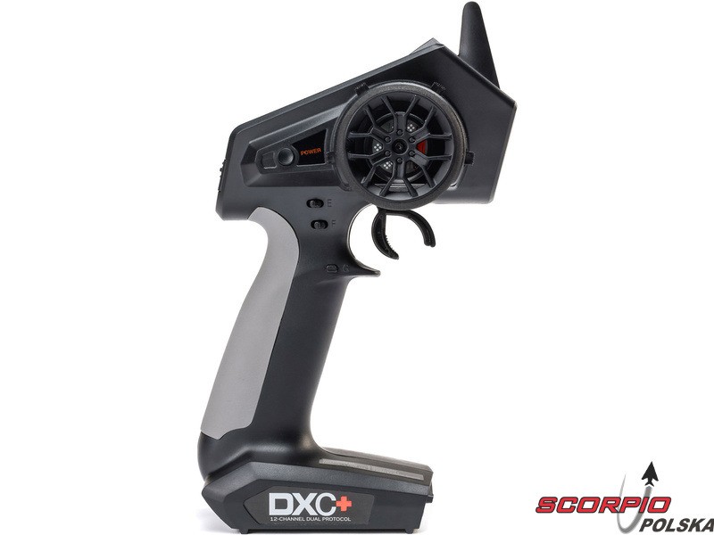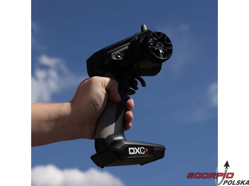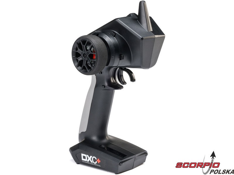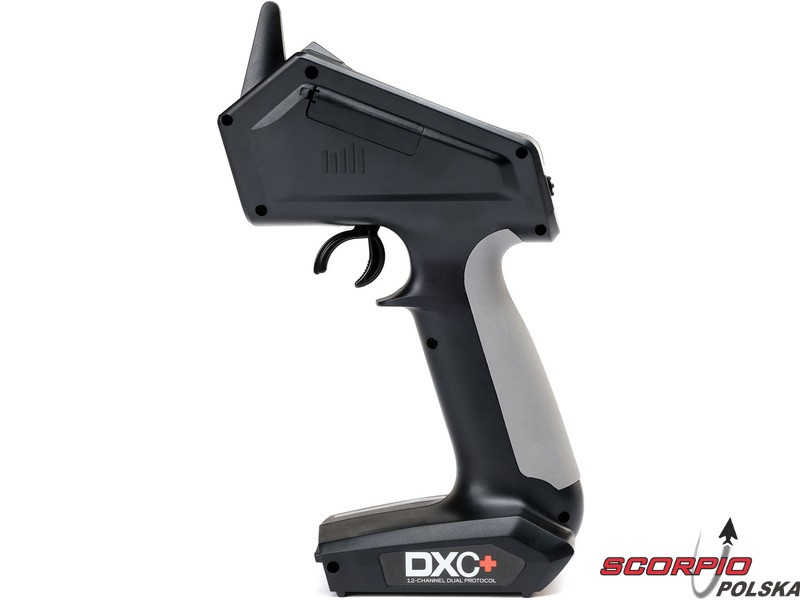 Pistoletowy 12 kanałowy nadajnik Spektrum DXC+ z podwójnym protokołem DSMR+ i SLT, co pozwala na sterowanie szeroką gamą modeli RC z wieloma funkcjami. Nadajnik zawiera technologię Spektrum Smart, a przy użyciu dodatkowych komponentów Spektrum można użyskać doskonały przegląd modelu, w tym dane telemetryczne i możliwość bezpośredniego ustawiania regulatora Firma Prog. Nadajnik ma proste i logicznie zorganizowane menu, pamięć na 20 modeli, duży, przejrzysty wyświetlacz i niewielką masę. Wśród nowych funkcji wersji DSMR+ znajduje się obsługa wielu różnych mikserów, przełączników logicznych, hamulca awaryjnego, a także możliwość zmiany wejść i wykonywania innych zaawansowanych programowań.