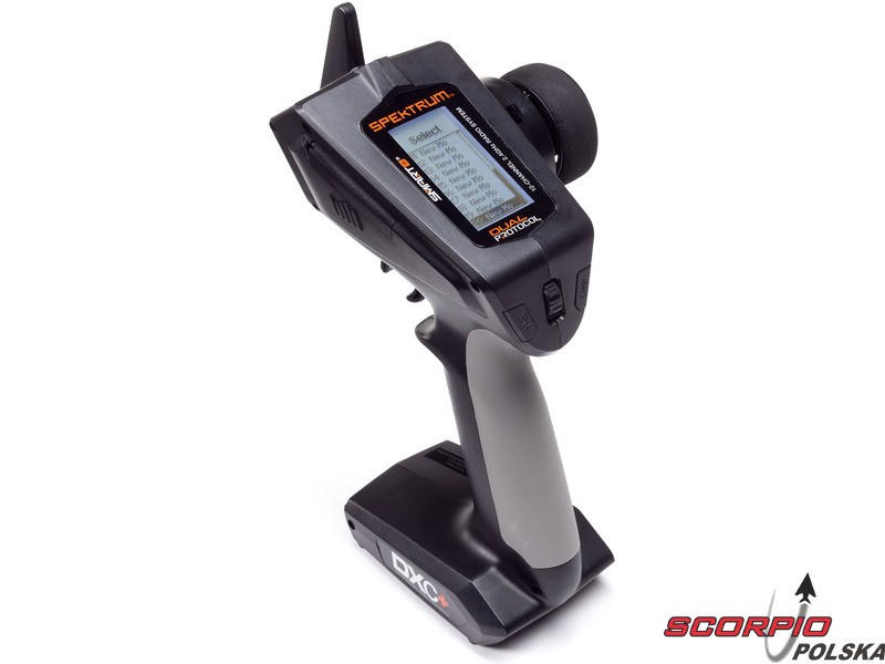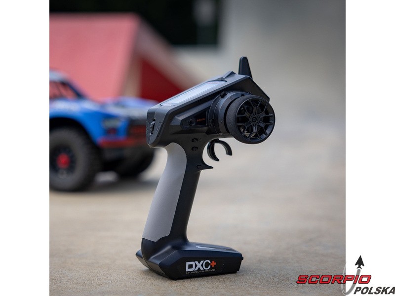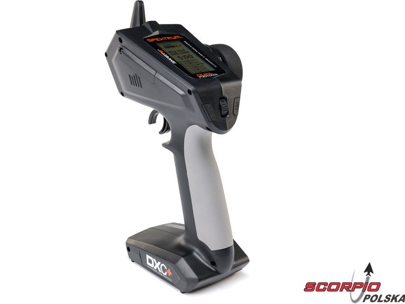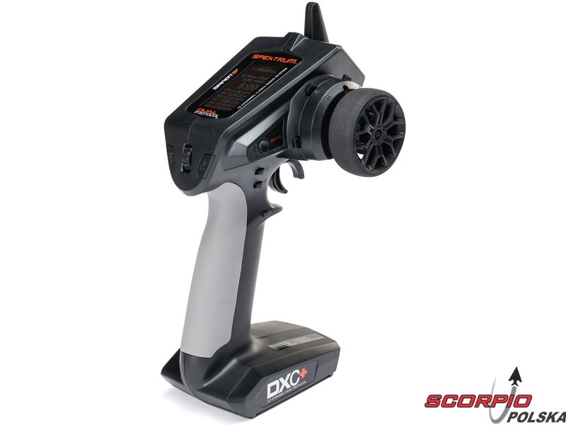Pistoletowy 12 kanałowy nadajnik Spektrum DXC+ z podwójnym protokołem DSMR+ i SLT, co pozwala na sterowanie szeroką gamą modeli RC z wieloma funkcjami. Nadajnik zawiera technologię Spektrum Smart, a przy użyciu dodatkowych komponentów Spektrum można użyskać doskonały przegląd modelu, w tym dane telemetryczne i możliwość bezpośredniego ustawiania regulatora Firma Prog. Nadajnik ma proste i logicznie zorganizowane menu, pamięć na 20 modeli, duży, przejrzysty wyświetlacz i niewielką masę. Wśród nowych funkcji wersji DSMR+ znajduje się obsługa wielu różnych mikserów, przełączników logicznych, hamulca awaryjnego, a także możliwość zmiany wejść i wykonywania innych zaawansowanych programowań.