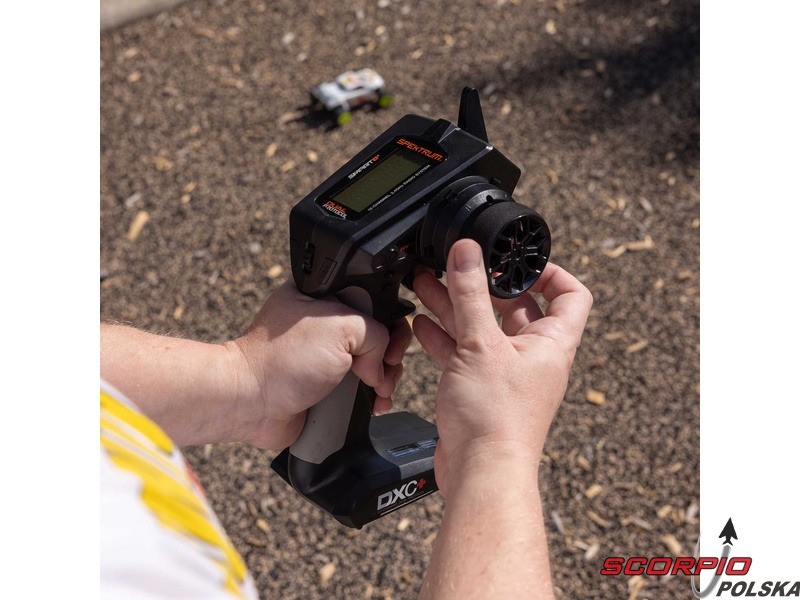Nadajnik Spektrum DXC+ to doskonałe, przemyślane rozwiązanie dla samochodów RC, łodzi i modeli, dla których oferuje szeroki wachlarz możliwości. 12 kanałów proporcjonalnych umożliwia sterowanie zaawansowanymi funkcjami modeli, np. oświetleniem, skrzynią biegów, blokadami mechanizmu różnicowego, niezależnym sterowaniem hamulcami, skręcaniem tylnych kół lub oddzielnym sterowaniem przednimi kołami. Zaletą jest intuicyjny software i programowanie, poruszanie się po menu jest proste dzięki przyciskowi przewijania. Dołączone gniazdo USB umożliwia łatwą aktualizację oprogramowania sprzętowego i kompatybilność z symulatorem VRC Racing. Dzięki technologii DSMR+ 2,4 GHz o dużej elastyczności częstotliwościowej oraz nowej technologii STL nadajnik może być używany w różnych typach modeli, w tym łodziach. Jego zasięg i reakcja, zwłaszcza w obciążonym środowisku 2,4 GHz, są doskonałe.