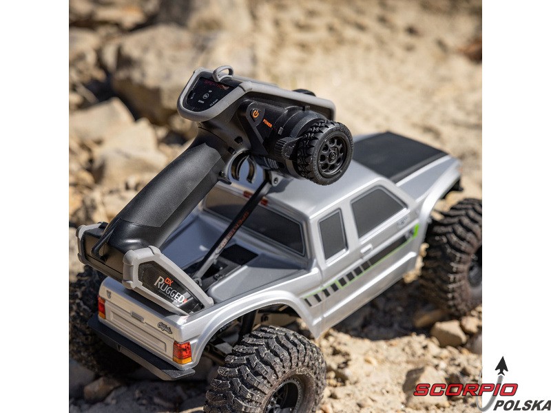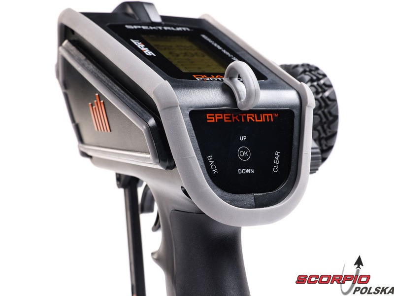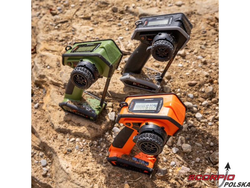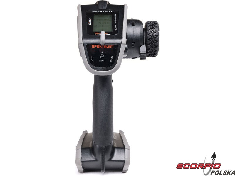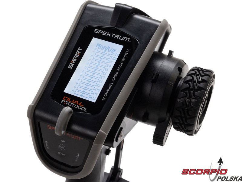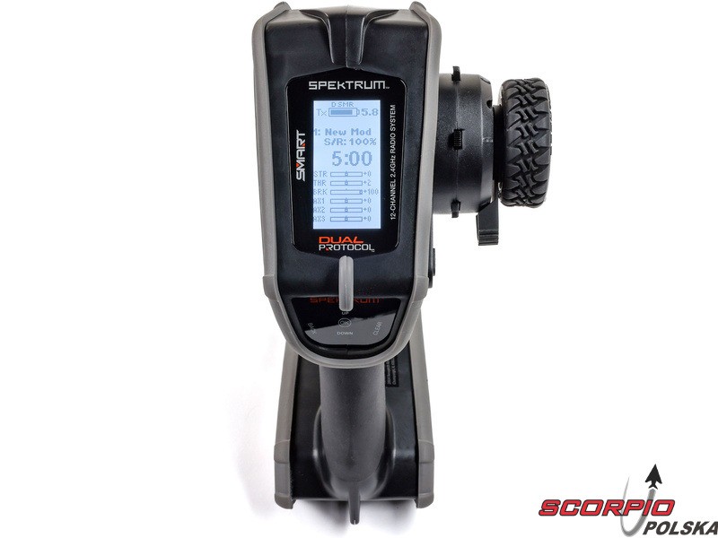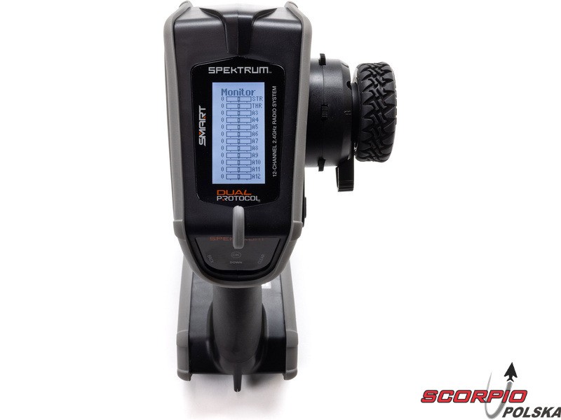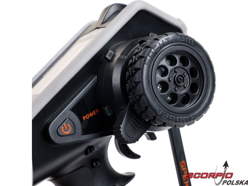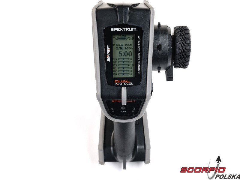 Pistoletowy 12-kanałowy nadajnik Spektrum DX Rugged+ z podwójnym protokołem DSMR+ i SLT, który umożliwia sterowanie szeroką gamą modeli RC z wieloma funkcjami. Nadajnik zawiera technologię Spektrum Smart, a przy użyciu dodatkowych komponentów Spektrum zyskuje się doskonały przegląd modelu, w tym dane telemetryczne i możliwość bezpośredniego ustawienia regulatora Firma Prog. Nadajnik ma proste i logicznie zorganizowane menu, pamięć na 20 modeli, duży, przejrzysty wyświetlacz i niewielką masę. Wśród nowych funkcji wersji DSMR+ znajduje się obsługa wielu różnych mikserów, przełączników logicznych, hamulca awaryjnego, a także możliwość zmiany wejść i wykonywania innych zaawansowanych operacji programowania.