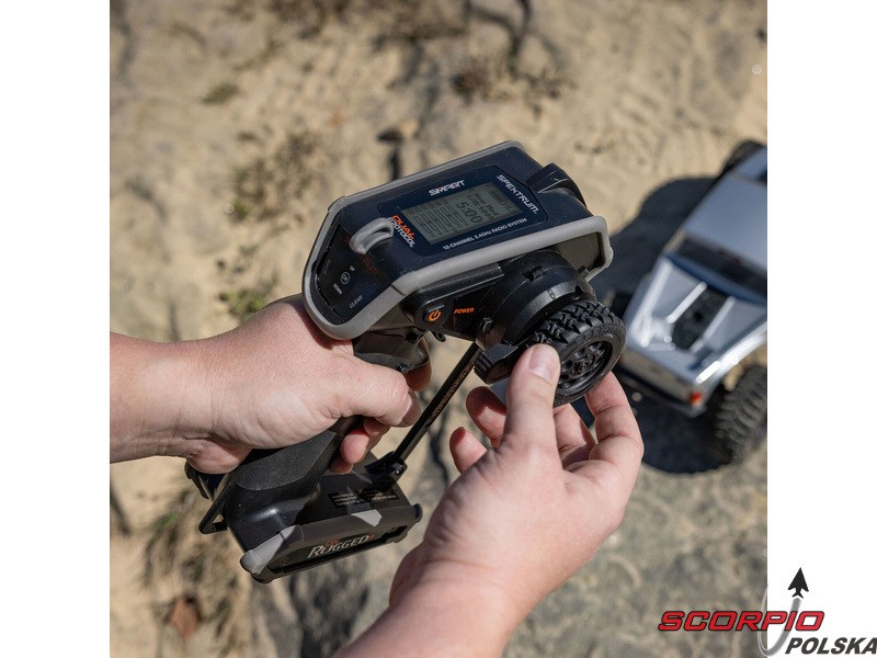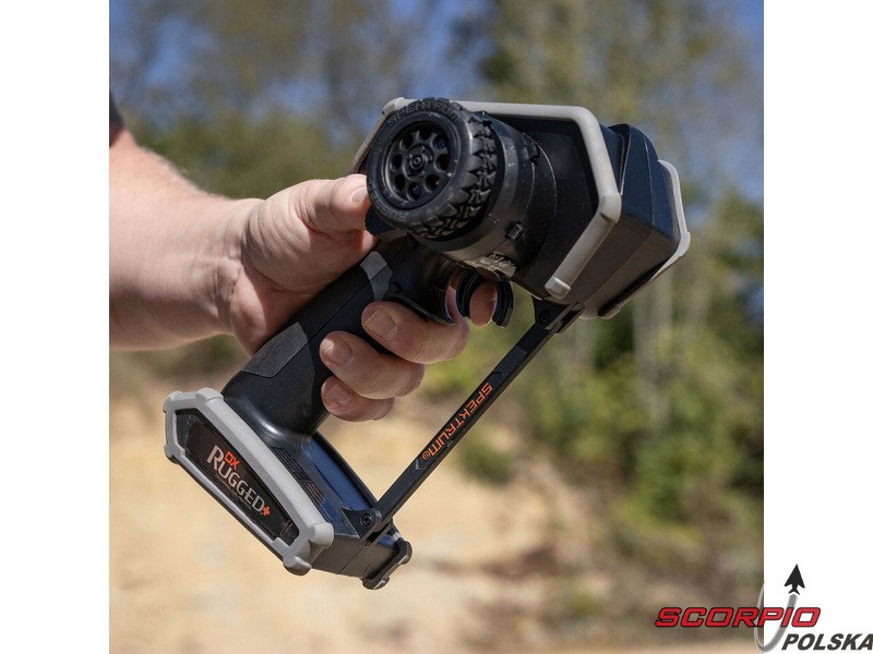 Ergonomiczne nadajniki Spektrum Rugged utorowały drogę do tego, aby każdy kierowca czuł się w modelu DX Rugged+ jak w domu. Dzięki temu możesz poczuć w dłoni antypoślizgowy uchwyt, który przyjemnie leży w dłoni, solidną kierownicę i logicznie rozmieszczone przełączniki pomocnicze. Ponadto nadajnik jest lekki i łatwy w obsłudze.