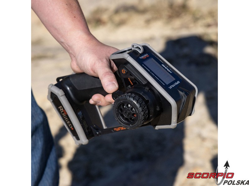 Nadajnik Spektrum DX Rugged+ to doskonałe, przemyślane rozwiązanie dla samochodów RC, łodzi i modeli, dla których oferuje szeroki wachlarz możliwości. 12 kanałów proporcjonalnych umożliwia sterowanie zaawansowanymi funkcjami modeli, takimi jak oświetlenie, skrzynia biegów, blokady mechanizmów różnicowych, niezależne sterowanie hamulcami, skręcanie tylnych kół lub oddzielne sterowanie przednimi kołami. Zaletą jest intuicyjne oprogramowanie i programowanie. Dołączone gniazdo USB umożliwia łatwą aktualizację oprogramowania sprzętowego. Dzięki technologii DSMR+ 2,4 GHz i nowej technologii SLT nadajnik może być używany w różnych typach modeli, w tym w łodziach. Jego zasięg i reakcja, zwłaszcza w obciążonym środowisku 2,4 GHz, są doskonałe.