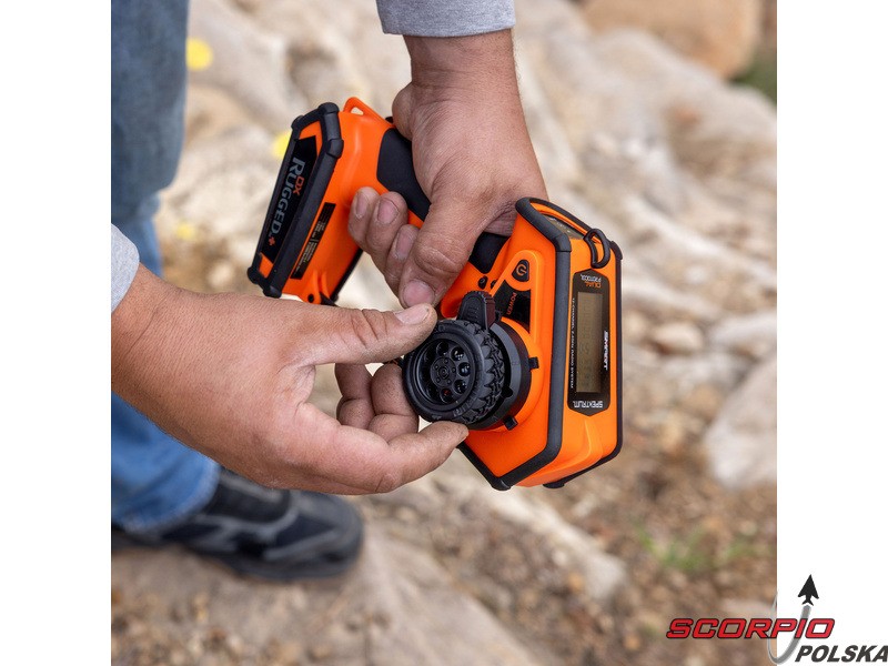 DX Rugged+ wyróżnia się konstrukcją nadajnika, która pokazuje, że bez obaw można poradzić sobie nawet z najtrudniejszym terenem, najtrudniejszymi warunkami i najsilniejszą konkurencją. Dlatego wytrzymałość idzie w parze z wygodą. Wbudowana boczna kieszeń pozwala na przechowywanie narzędzi, a dwa uchwyty na pasek na szyję (jeden gumowy, drugi wtopiony w obudowę) zapewniają natychmiastową swobodę rąk.
