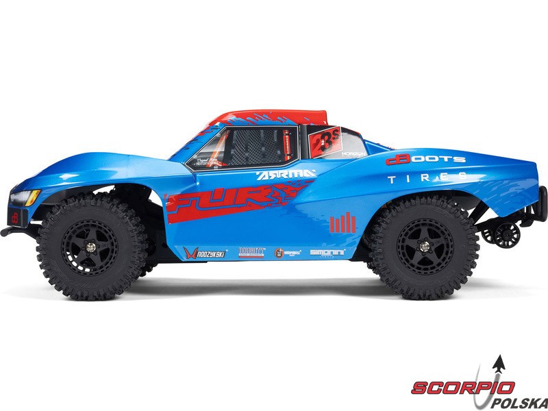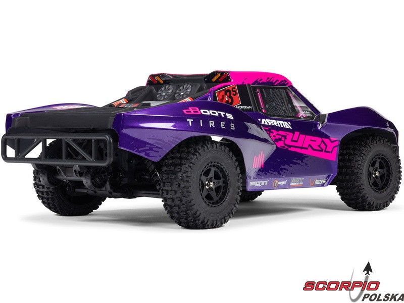 Model Arrma Fury 223S BLX Short Course RC z napędem na 2 koła, niezależnym zawieszeniem, amortyzatorami olejowymi i mocnym napędem trójfazowym osiągnie prędkość do 80 km/h. Wszystko to w przystępnej cenie za tak potężny model. Wytrzymałość, osiągi BLX i precyzyjne makietowe wykonanie są nieodłączne dla marki Arrma i wszystkie ważne cechy zostały zachowane również w tym modelu. W zestawie znajduje się ekskluzywna stabilizacja jazdy DSC. Samochód RC jest przeznaczony dla dzieci, dorosłych, początkujących i doświadczonych kierowców, którzy otrzymują gotowy, trwały i szybki model.