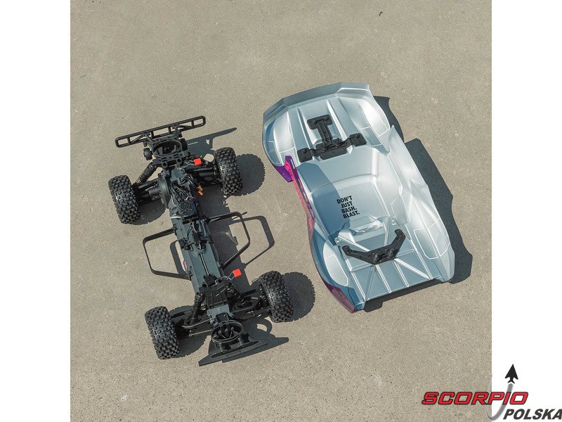 Wytrzymała karoseria z poliwęglanu jest elastyczna, trwała i posiada przyciągającą wzrok grafikę z wykończonym lakierem. Karoserię można łatwo zdemontować w celu uzyskania dostępu do elektroniki i zabezpieczyć ukrytym klipsem, aby uzyskać czysty wygląd.