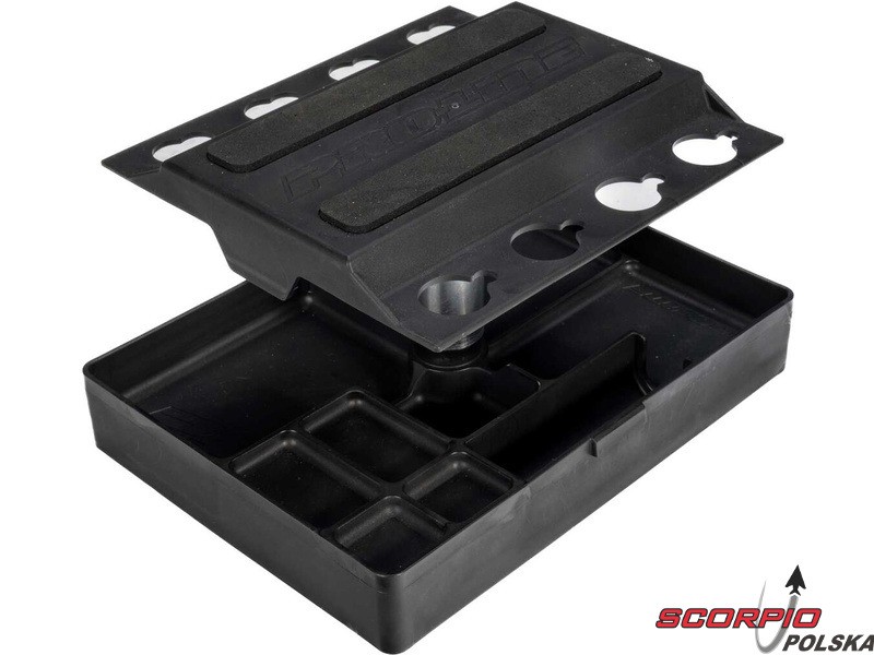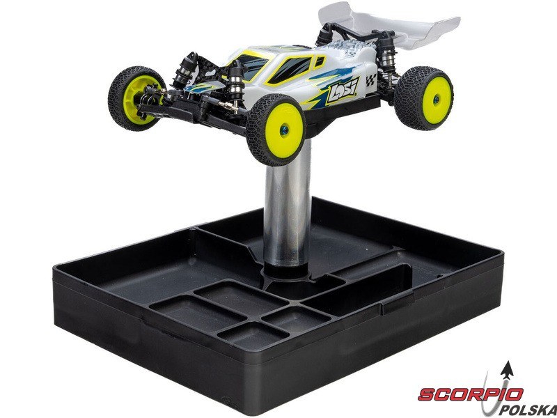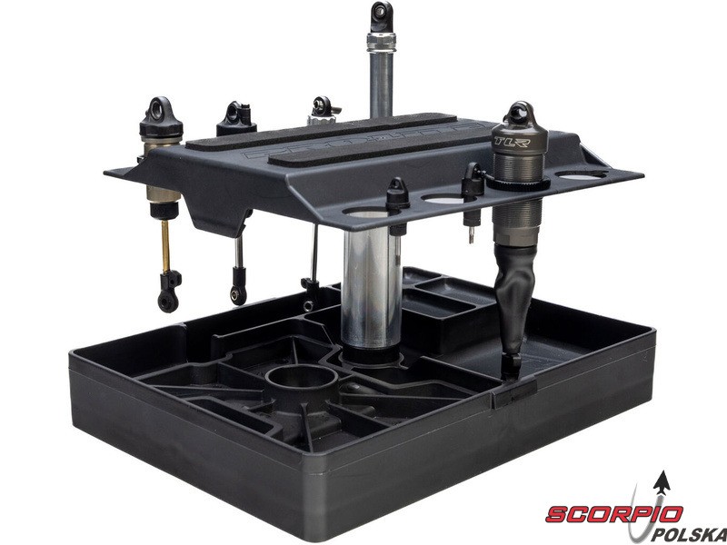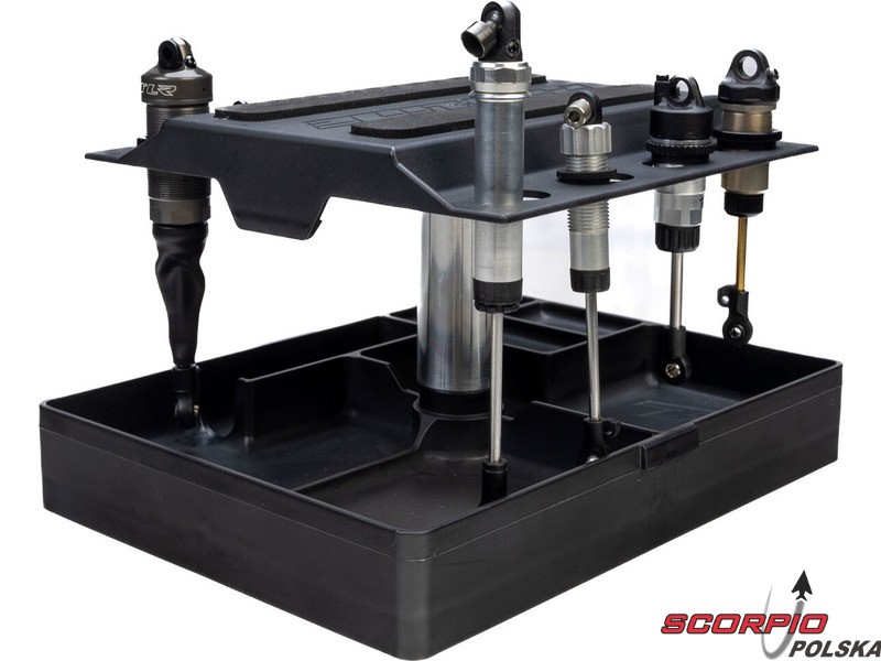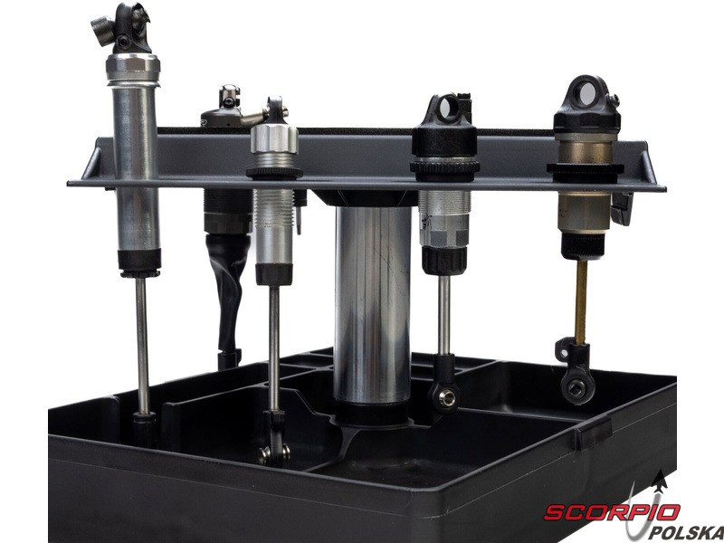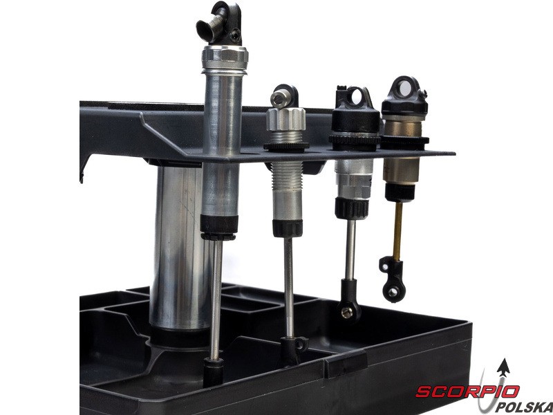 Górna część przeznaczona do modeli w skali 1:8 posiada kilka otworów, w których można umieścić amortyzatory w pozycji pionowej w celu ich serwisowania i wymiany oleju.