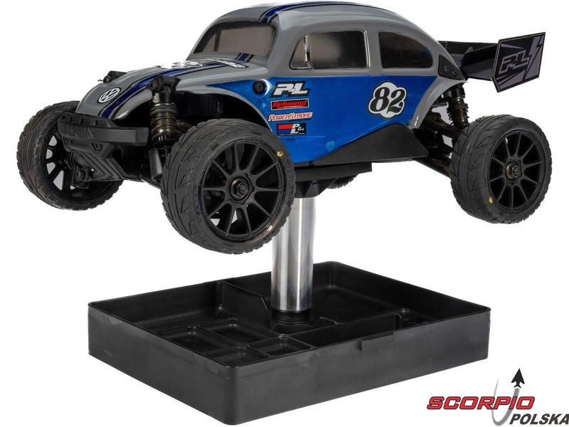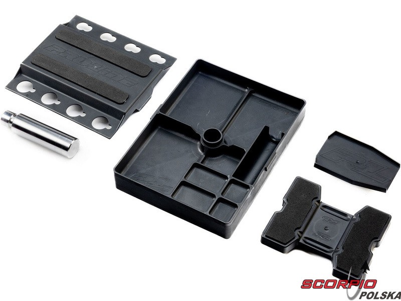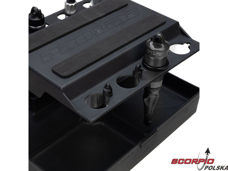 Stojak Pro-Line został zaprojektowany jako uniwersalne rozwiązanie do serwisowania szerokiej gamy modeli samochodów RC w skali od 1:28 do 1:8. Zapewnia płynny obrót, modułową górną część składającą się z trzech elementów, wbudowaną przestrzeń do przechowywania oraz kompaktowy transport, co sprawia, że jest idealny zarówno dla zawodników, jak i hobbystów.