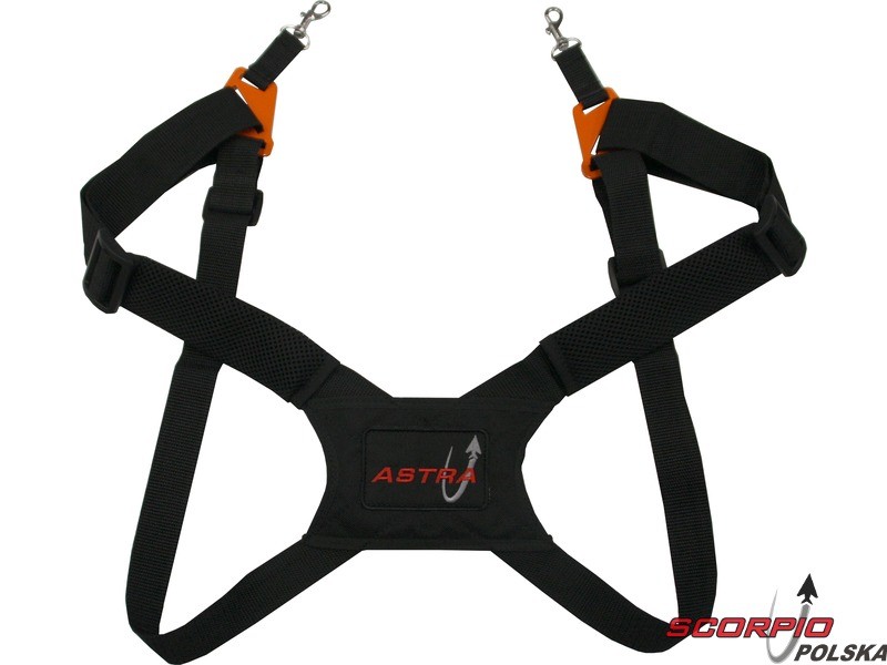 Najwyższej jakości szelki nadajnika z logiem Astra wykonane z wytrzymałego materiału, posiada regulowaną długość i solidne karabinki do mocowania do pulpitu.