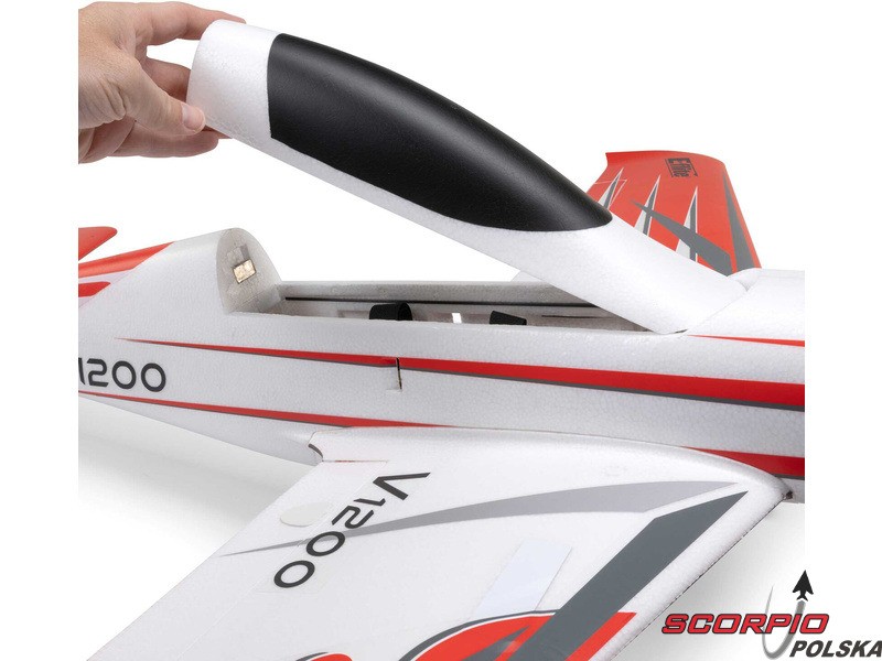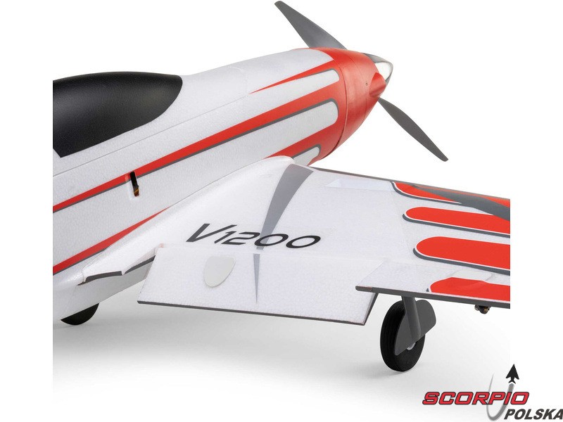 Model samolotu RC dla miłośników adrenaliny E-flite V1200 V2 1,2 m, osiągający maksymalną prędkość nawet 220 km/h, należy do najszybszych samolotów RC. Zmodernizowana konstrukcja modelu oferuje większy i bardziej wytrzymały mechanizm chowanego podwozia, umożliwiający start i lądowanie nawet na lekko nierównych powierzchniach, wyraziste kolory zapewniające dobrą widoczność oraz najnowszą elektronikę Spektrum z telemetrią SMART. Oprócz elektrycznego podwozia chowanego model oferuje również klapy do startu, lądowania i powolnych przelotów. Już z akumulatorem 4S (14,8 V) LiPol model osiąga prędkość do 170 km/h, a przy użyciu akumulatora 6S (22,2 V) LiPo można osiągnąć prędkość nawet 220 km/h (akumulator sprzedawany jest osobno)!
