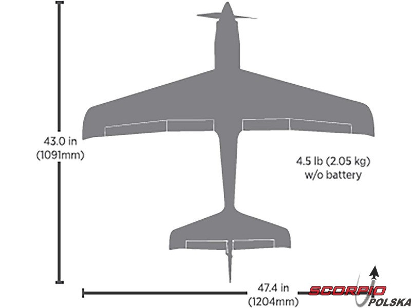 Wydajny silnik bezszczotkowy i regulator pozwalają wybrać prędkość, z jaką model ma latać. Dzięki akumulatorowi LiPo 4S o pojemności 3200–5000 mAh model osiąga prędkość do 170 km/h, a przy użyciu akumulatora LiPo 6S o pojemności 3200–7000 mAh można osiągnąć prędkość nawet 220 km/h! Wszystko to dzięki fabrycznie dostarczonemu dwułopatkowemu śmigłu APC 10x8E i aluminiowemu kołpakowi.