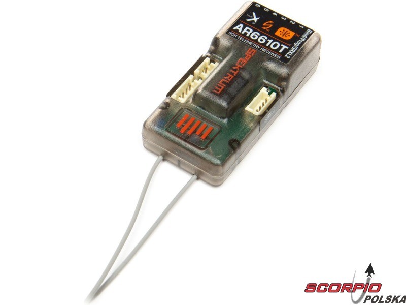Nowy odbiornik RC Spektrum AR6610T jest kompatybilny z akcesoriami SMART - regulatorem Spektrum Avian, który umożliwia transmisję danych telemetrii bez czujników. Odbiornik ma zintegrowany czujnik barometryczny, dlatego może działać jako vario i wysokościomierz. Port SRXL2 może wykorzystać dodatkowy odbiornik SRXL2.