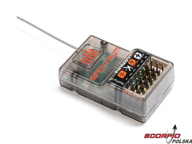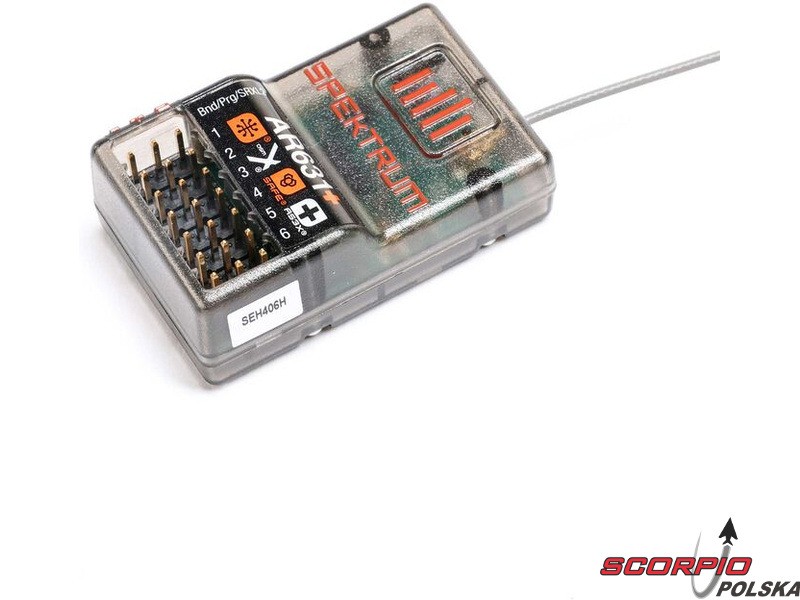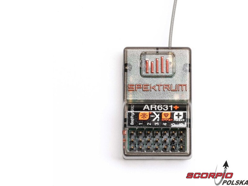 Sześciokanałowy odbiornik Spektrum AR631+ z funkcjami AS3X/SAFE i telemetrią z obsługą modulacji DSM2 i DSMX. Zintegrowany 3-osiowy żyroskop MEMS z ekskluzywnym oprogramowaniem do korekcji lotu. Programowanie za pomocą Forward programming bezpośrednio z nadajnika Spektrum. Przycisk programowania.