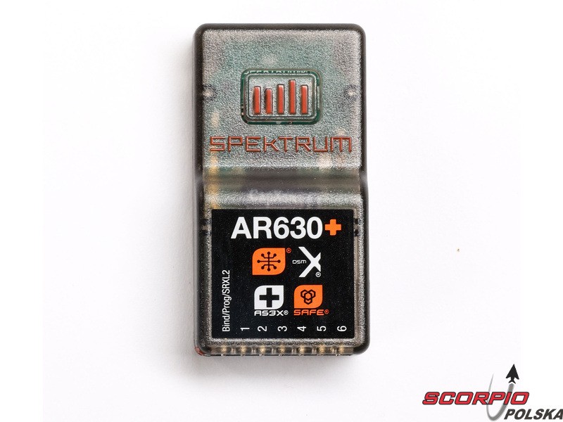 Odbiornik RC Spektrum AR630+ jest kompatybilny z systemem Spektrum SMART i transmisją telemetrii Smart. Zaletą jest wbudowana nowa stabilizacja AS3X+, która koryguje wpływ wiatru i turbulencji za pomocą 3-osiowego żyroskopu MEMS i ekskluzywnego oprogramowania oraz funkcja SAFE, która zapewnia kontrolę nad lotem. Kompaktowe wymiary odbiornika z wbudowaną anteną w obudowie. Obsługa nowej funkcji pobierania ustawień z odbiornika (Smart Transmitter Model Files).