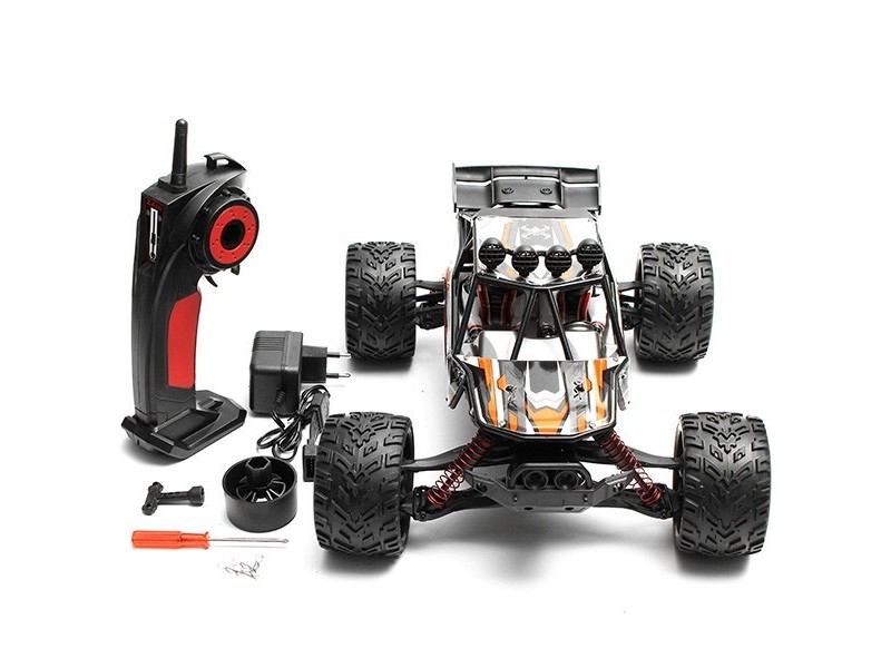Model sterowany jest za pomocą profesjonalnego nadajnika 2.4Ghz, dzięki czemu zasięg jest dużo większy, a reakcja na sterowanie jest szybsza niż w przypadku tradycyjnych pilotów z częstotliwością 27/40MHz. Zabezpieczenie antyzakłóceniowe umożliwia sterowanie wieloma autami w tym samym czasie.
