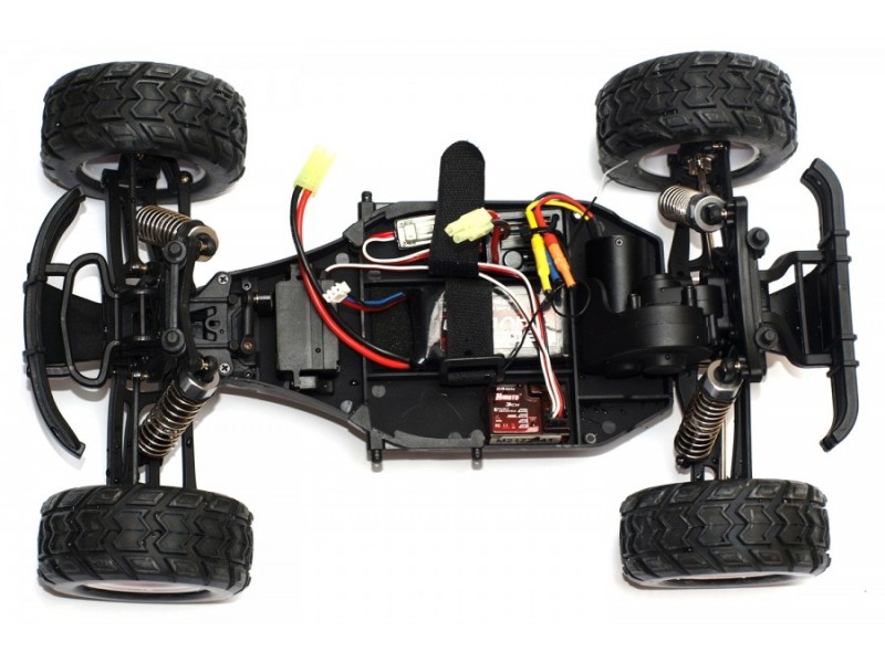 Szeroki rozstaw kół i duże metalowe amortyzatory wypełnione odpowiednim olejem gwarantują odpowiednią przyczepność i stabilność na zakrętach, a odpowiedni prześwit i napęd 2WD na tylne koła pozwala poszaleć.
