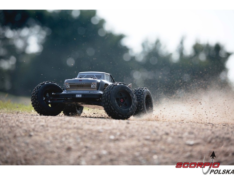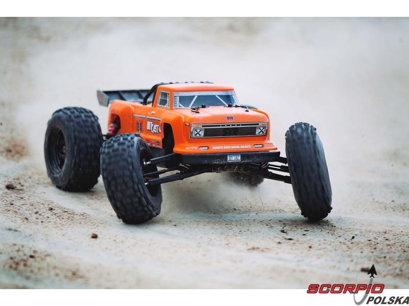 Mega wydajny i mocny Arrma Outcast 6S BLX w skali 1:8 z napędem na wszystkie koła 4WD. Trójfazowy silnik BLX4074 2050kv da autu prędkość aż 96km/h! (2x 3S LiPol). Niezawodna aparatura RC Spektrum STX2 2,4GHz. Sztywne 3mm aluminiowe podwozie, mocne koła dBoots, pomalowana karoseria.