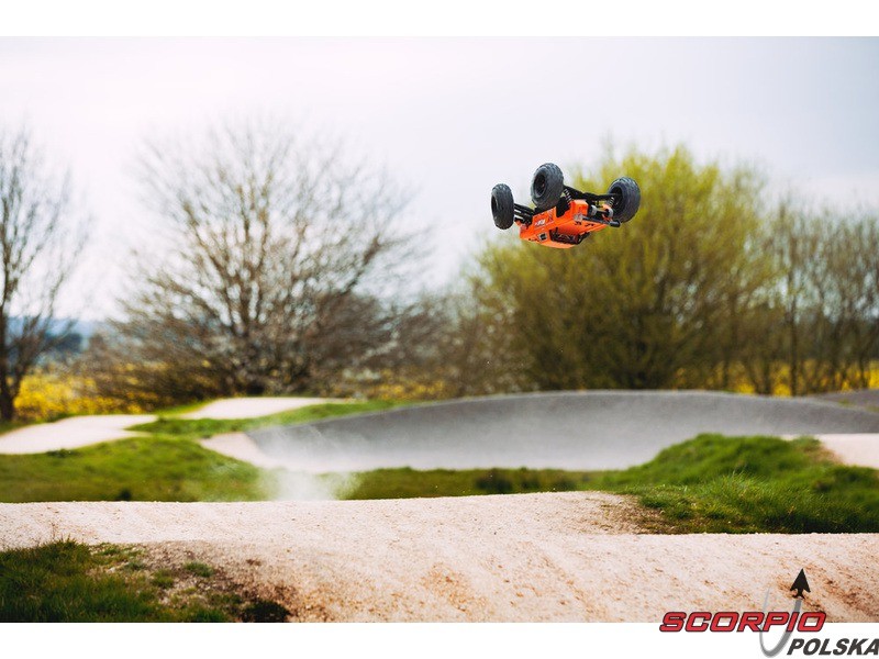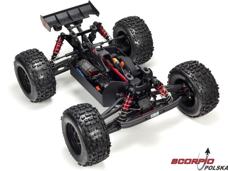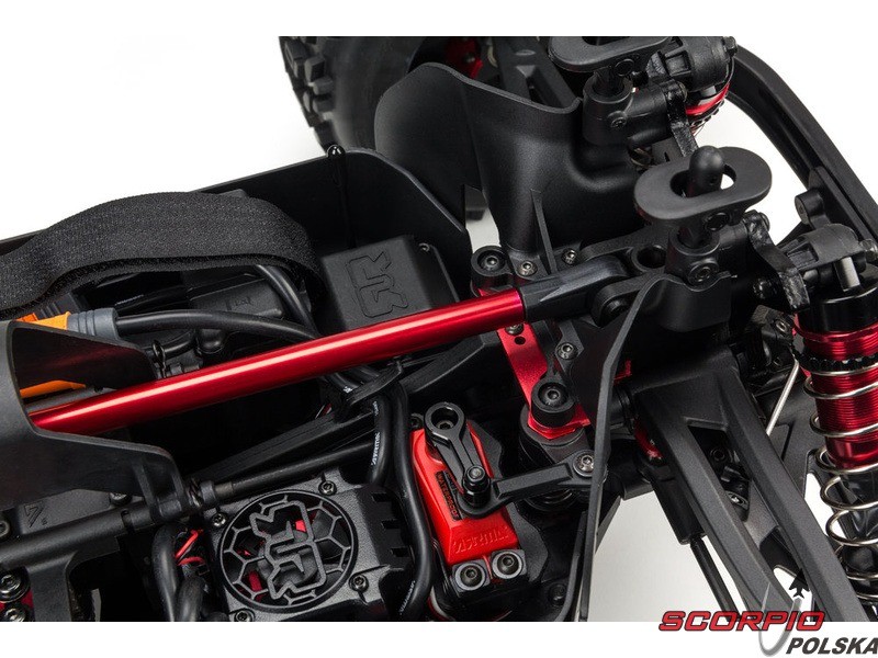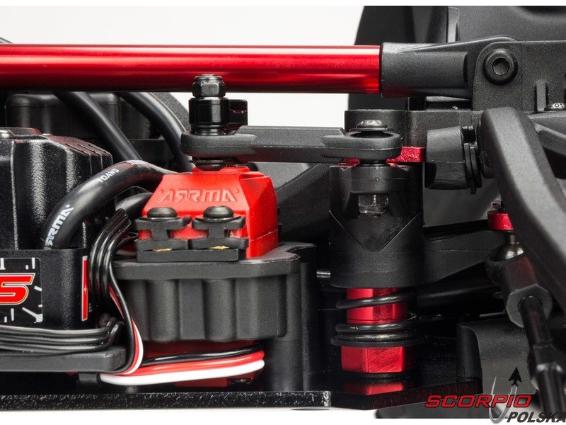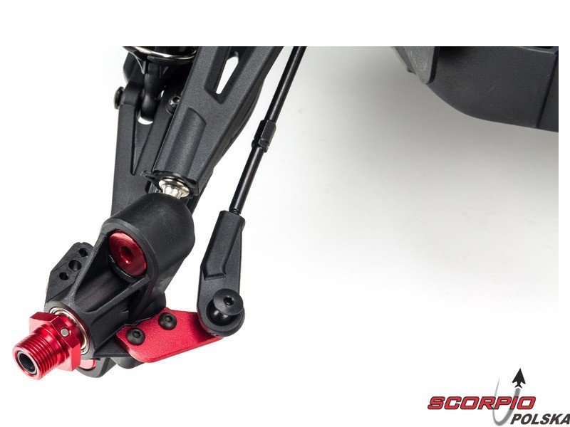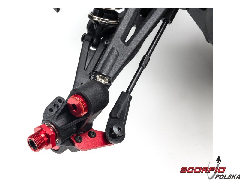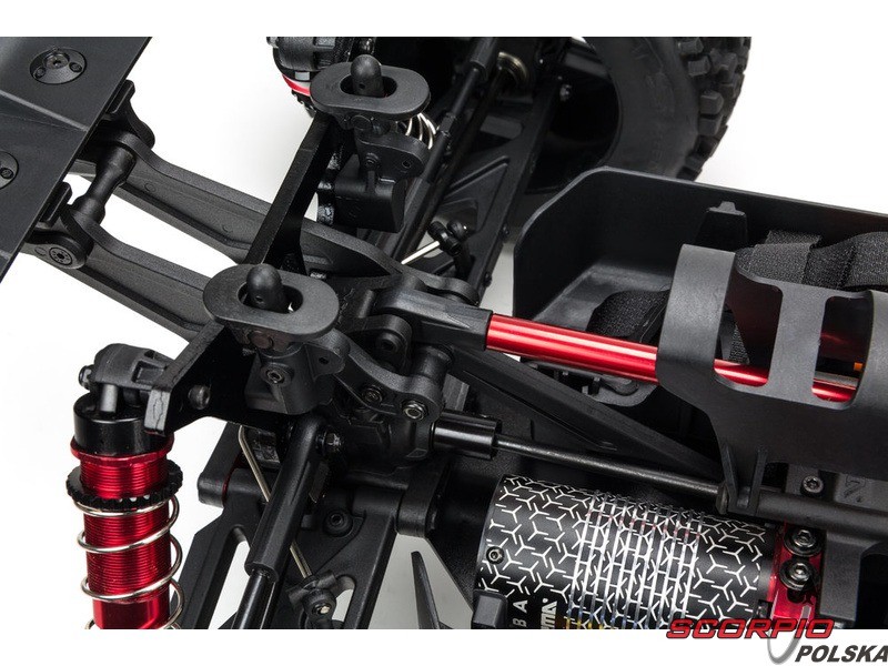 Olejowe, aluminiowe anodowane na czerwono amortyzatory mają osłony chroniące przed uszkodzeniem przy przewróceniu wozu. Auto ma wysokiej jakości trwałe amortyzatory z możliwością ustawienia naprężenia wstępnego. Amortyzatory są wyposażone w kołnierze chroniące przed wnikaniem nieczystości do tłoczyska.
