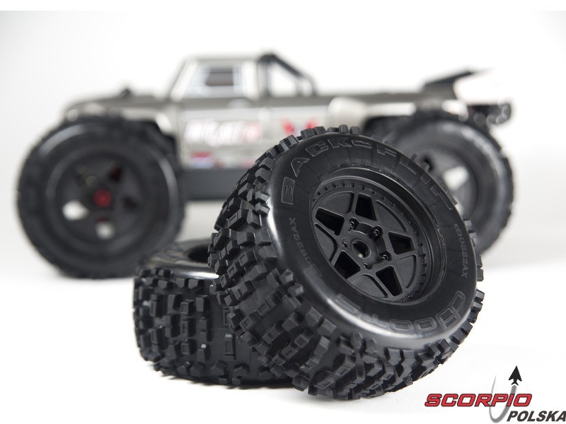 Wytrzymałe opony dBoots BACKFLIP z agresywnym wzorem są zamontowane na sztywnych czarnych, nylonowych felgach, co zapewni autu Outcast dobrą trakcję dla natychmiastowego przyspieszenia. 17mm piasty sześciokątne umożliwiają zastosowanie szerokiej skali kombinacji kół i opon również od innych producentów.
