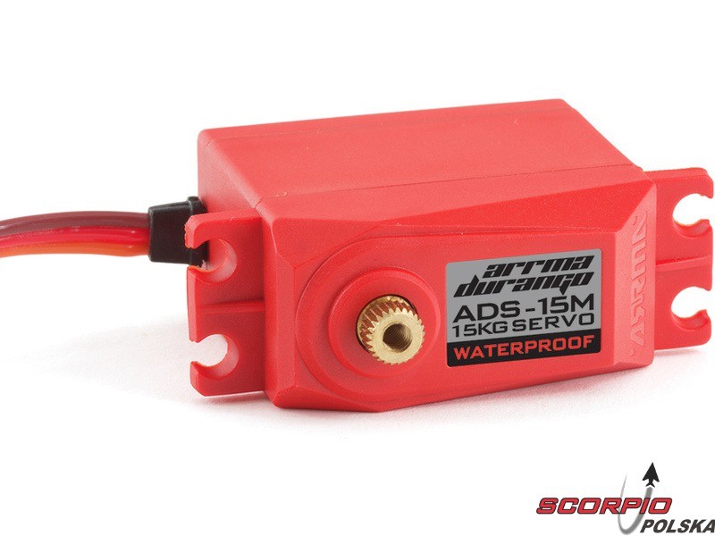 Serwo kierunku ADS-15M s momentem 15kg.cm/7,4V jest bardzo mocnym serwem kierunku w wykonaniu wodoodpornym z metalową przekładnią. Ma standardowe rozmiary 41x20x38mm.