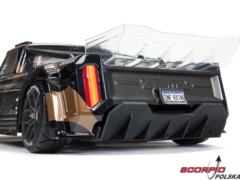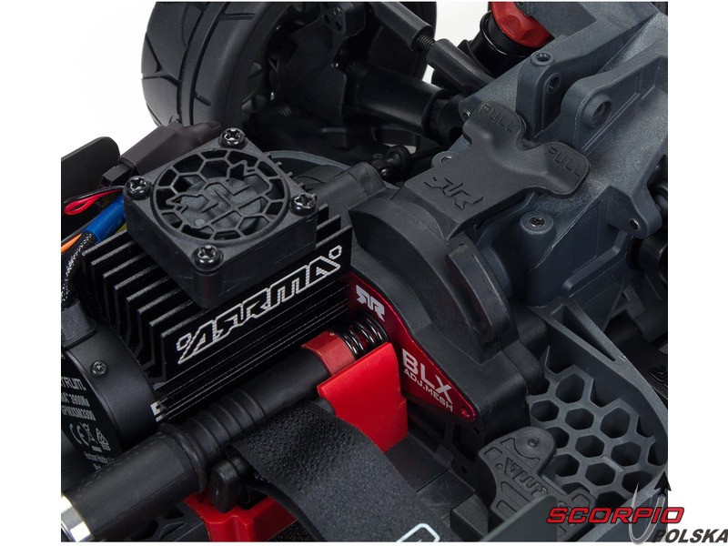 Sprawdzona platforma Arrma 4x4 charakteryzuje się mocnym kompozytowym podwoziem o zwiększonej wysokości ścian bocznych dla ochrony przed zanieczyszczeniami, niezależnym zawieszeniem kół, amortyzatorami olejowymi z silikonowymi o-ringami, metalowymi przekładniami i innymi wyrafinowanymi cechami konstrukcyjnymi. Popularna, łatwo dostępna konstrukcja modułowa ARRMA® zapewnia prostą konserwację dzięki oddzielnym, łatwo wyjmowanym modułom, takim jak system zasilania, elektronika i mechanizmy różnicowe.