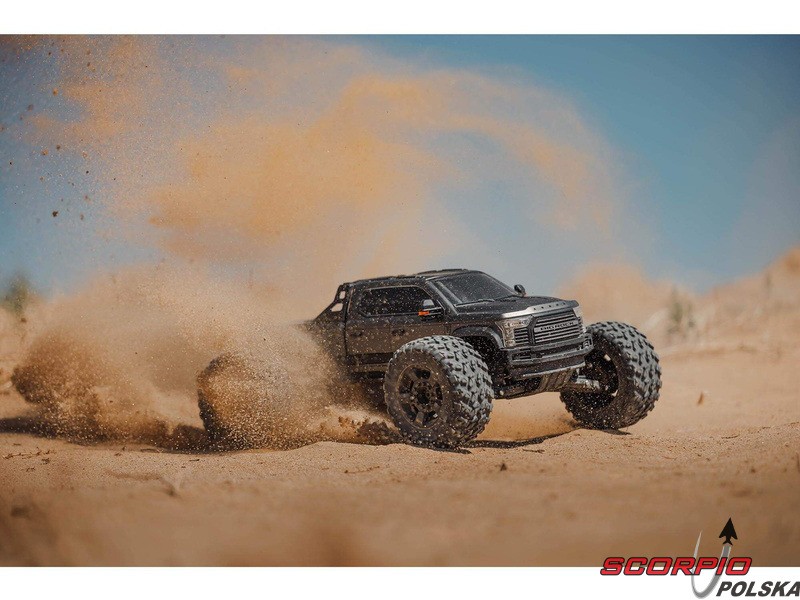 Model RC Arrma Big Rock 6S BLX w skali 1:7 z napędem na 4 koła, agresywnym wyglądem i ekstremalnymi osiągami. Prędkość do 104 km/h. Mocny silnik bezszczotkowy z regulatorem Spektrum Smart. Wysoka trwałość dzięki aluminiowym częściom. Nadajnik Spektrum SLT3.