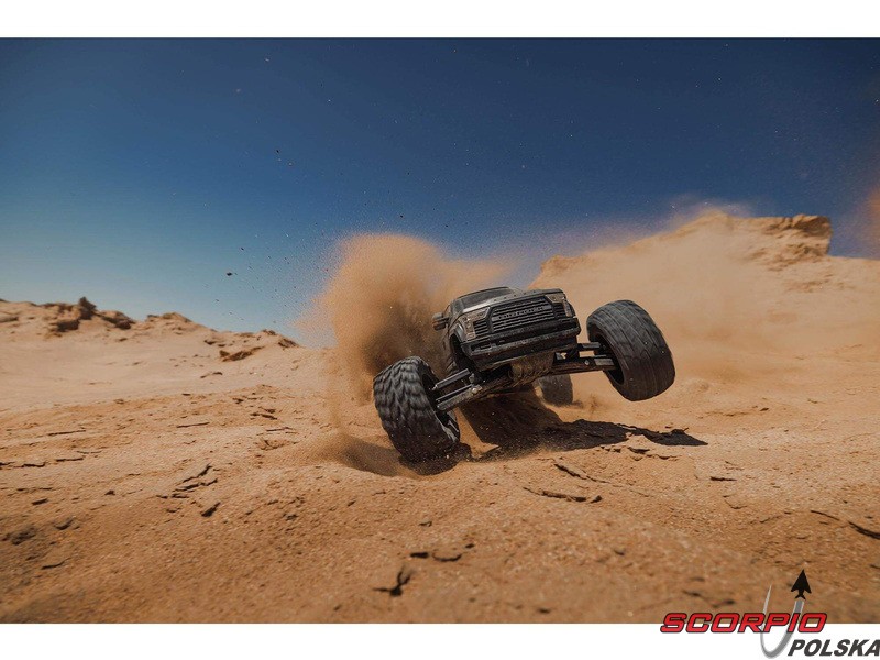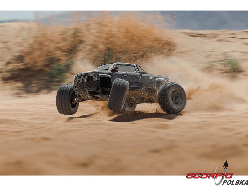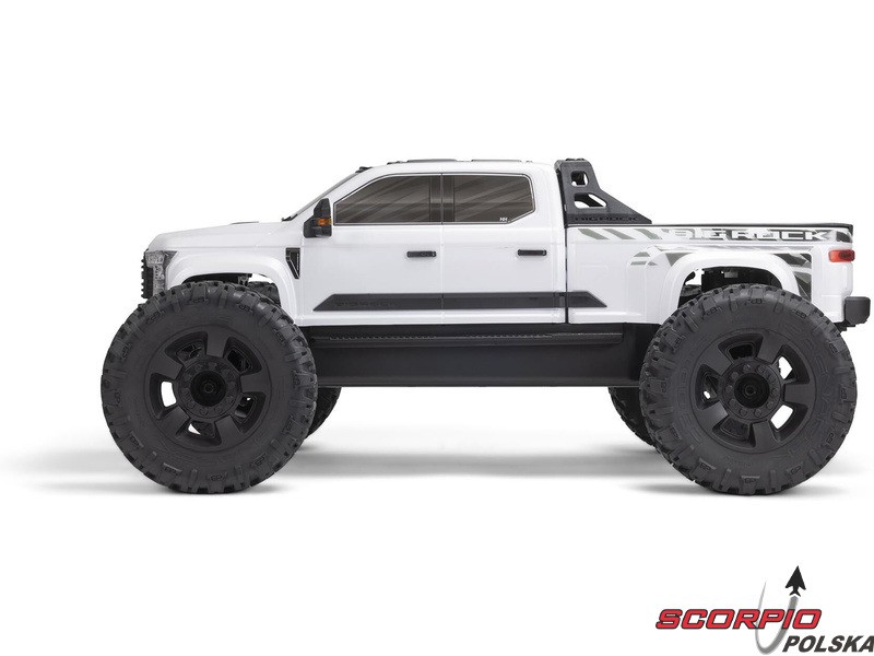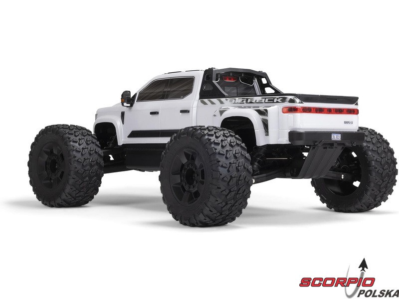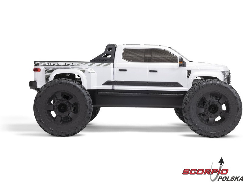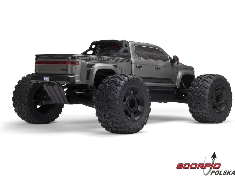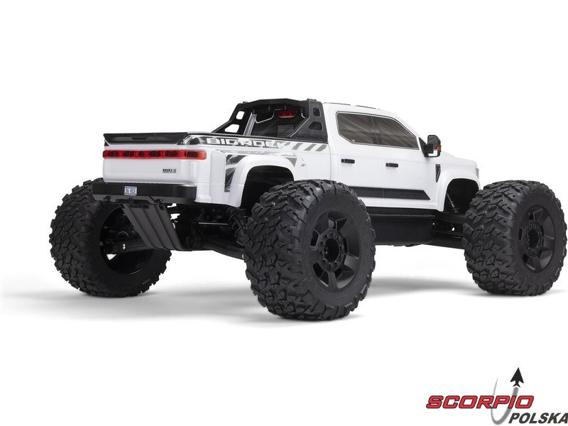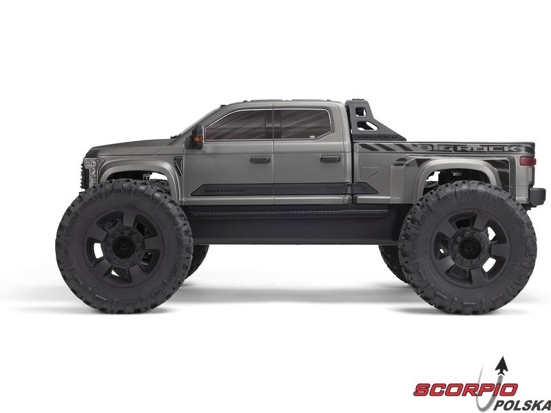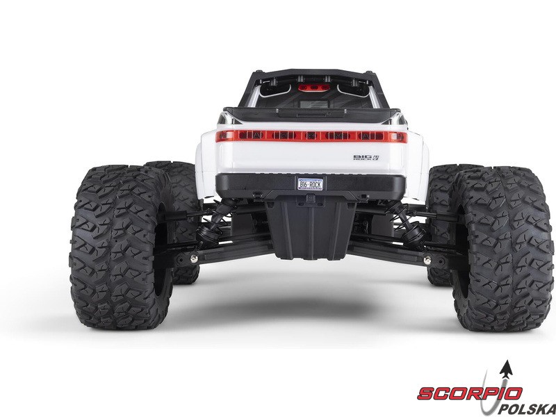 Karoseria zdalnie sterowanego modelu BIG ROCK 6S BLX RTR z długim korpusem jest uosobieniem agresywnej stylistyki pickupa. Bezklipsowy system mocowania przedniej karoserii utrzymuje czysty, niezwykle szczegółowy wygląd w skali. Zintegrowana rama zapewnia dodatkową ochronę przed przewróceniem. Masywne, wentylowane opony dBoots® RAGNAROK™ V2 z wysokim bieżnikiem na pięcioramiennych kołach dopełniają wyjątkowego wyglądu i zapewniają wysoką przyczepność potrzebną do szybkiego i łatwego prowadzenia na różnych nawierzchniach.
