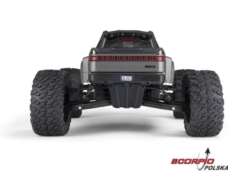 Monster truck ARRMA® BIG ROCK™ 6S BLX RTR w skali 1:7 został zaprojektowany do szybkiej i ostrej jazdy bez kompromisów. Posiada anodyzowane na czarno aluminiowe podwozie z mocnymi kompozytowymi osłonami bocznymi chroniącymi przed brudem, usztywnieniem środkowym i rozpórkami śrubowymi dla maksymalnej trwałości. Wytrzymały układ napędowy obejmuje całkowicie metalowy mechanizm różnicowy i przekładnie. W całym układzie napędowym zastosowano stalowe półosie.