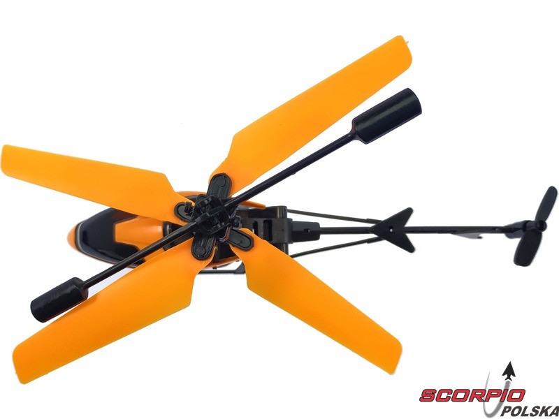Śmigłowiec RC NINCOAIR Flog 2 od Ninco jest odpowiedni dla początkujących pilotów i dzieci. Dzięki swojej konstrukcji i wbudowanemu żyroskopowi jest bardzo stabilny w locie. Śmigłowiec jest przeznaczony do lotów wewnątrz pomieszczeń. Pokój Twojego dziecka stanie się nagle lotniskiem, a Twoje biurko heliportem. Wytrzymała konstrukcja kadłuba i elastyczne łopaty wirnika zapewniają wysoką trwałość nawet przy uderzeniach. Plastikowa obudowa jest pomarańczowa. Dwa przeciwbieżnie obracające się wirniki są napędzane przez silniki prądu stałego. Śmigłowiec leci stabilnie do przodu i może być kontrolowany pod względem wysokości oraz rotacji w lewo i prawo..