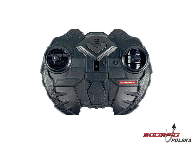 Zasięg nadajnika drążkowego na podczerwień wynosi 8 metrów. Aby go zasilić, należy kupić 4x baterie AA. Jest on przystosowany głównie dla dzieci. Na górze posiada schowek, w którym ukryty jest kabel służący do ładowania akumulatora modelu. Nadajnik posiada następujące funkcje: wznoszenie w górę, opadanie w dół oraz skręcanie w lewo lub w prawo. Z przodu znajdują się dwa przyciski trymujące, za pomocą których można precyzyjnie dostroić lot modelu. Sterowanie modelem - po starcie model leci powoli do przodu, a nadajnik pozwala kontrolować jego wysokość i kierunek, w którym leci.