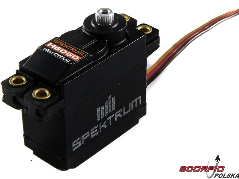 Cyfrowe serwo Spektrum H6050 High Torque, jest dostępnym cenowo serwem do cykliki modeli śmigłowców RC do wielkości 500 ( Blade Fusion 480 ). Moment 11.5 kg.cm @ 6V, masa 62g. Szybkość 0.103 s/60° @ 6V, rozmiary 38 x 20 x 40 mm. Zasilanie 4,8-6V, 2 x łożysko, metalowa przekładnia.