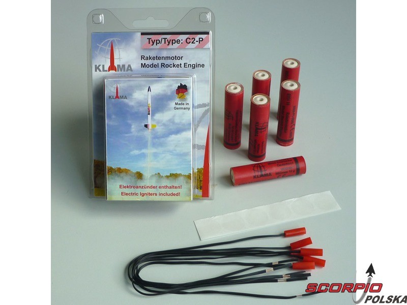 Opakowanie zawiera 6 silników rakietowych Klima C2-P EL, wraz z zapalnikami elektrycznymi, instrukcje użytkowania.