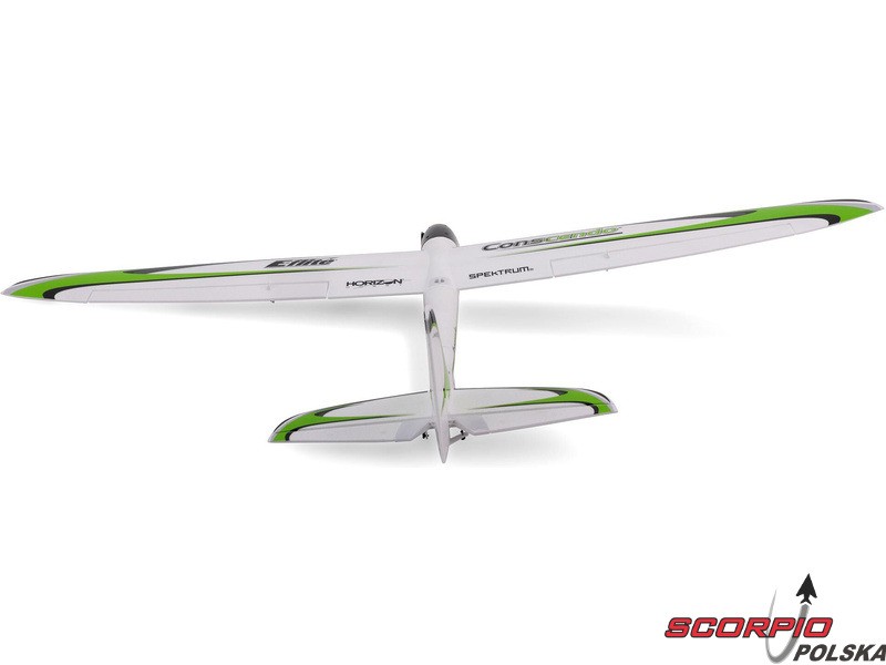 Model samolotu RC E-flite UMX Conscendo 0.8m SAFE Select AS3X BNF Basic, to pomniejszona ultra-mikro wersja wspaniałego Conscendo Evolution 1.5m. Sportowy akrobacyjny motoszybowiec z łatwym i niezwykle przyjemnym lataniem. Można użyć 2S LiPol dla zrelaksowanego latania lub 3S dla ekstremalnego latania akrobacyjnego.
