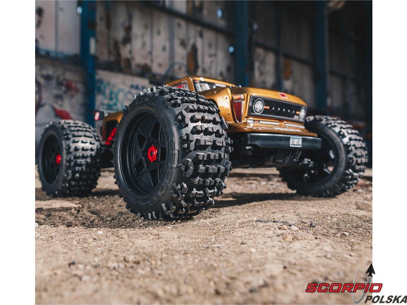Wysokiej jakości gumowe opony dBoots® Back-Flip są przyklejane do kół MT 3,8" z aluminiowymi nakrętkami i piastami 17mm.