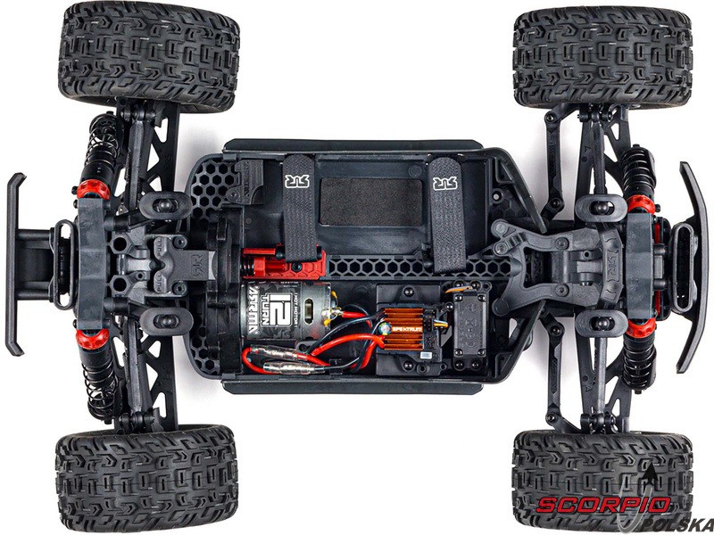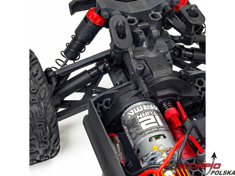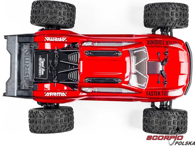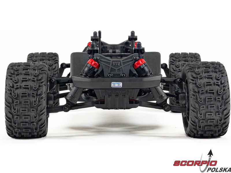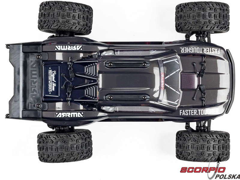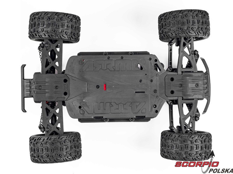Doskonała i pomysłowa modułowa konstrukcja podwozia opracowana przez inżynierów ARRMA, ułatwi dostęp do podzespołów. Oddzielnie wyjmowane moduły dla układu zasilania, elektroniki i części mechanizmów różnicowych umożliwiają szybką i łatwą konserwację. Samoodpowietrzające się, wypełnione olejem amortyzatory z silikonowymi o-ringami wykorzystują sprawdzoną konstrukcję ułatwiającą konserwację. Wysokie osłony podwozia ograniczają przedostawanie się zanieczyszczeń do miski podwozia. Sztywne wieże amortyzatorów utrzymują przednią i tylną oś sprężyście na podwoziu i zapewniają ochronę podczas nierówności terenowych.