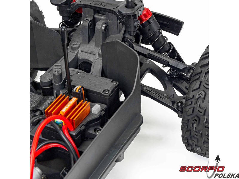 Arrma Vorteks™ 4X2 BOOST 2WD 1:10 oparty jest na sprawdzonej platformie ARRMA 4X4. Oznacza to, że można łatwo zmienić dostarczony silnik 550 MEGA DC na silnik trójfazowy LiPol 3S, gdy będziemy gotowi na wysoką wydajność.