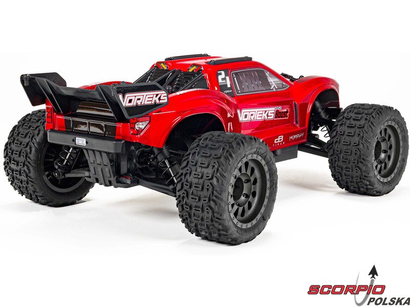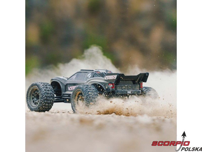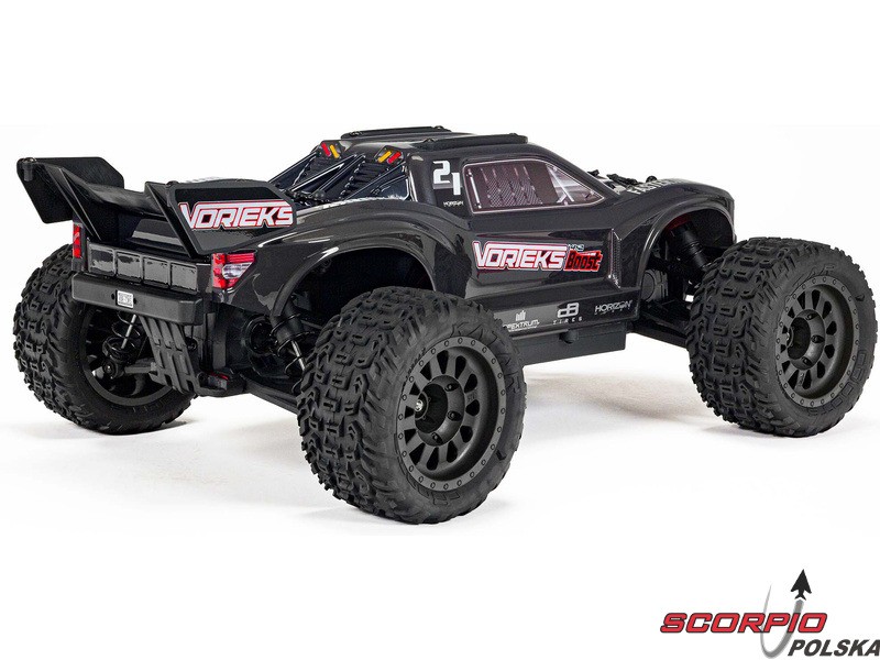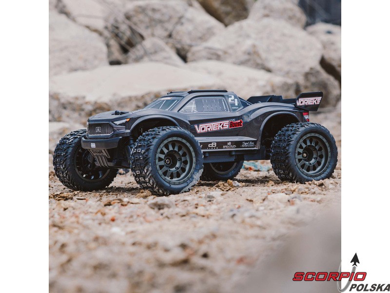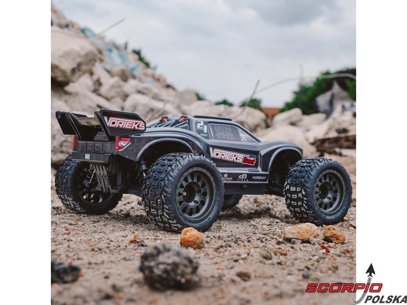 Model RC ciężarówki Arrma Vorteks 4x2 Boost Mega 2WD 1:10 RTR to świetny wybór dla początkujących. Wyrafinowana konstrukcja modułowa z łatwą konwersją na napęd 4x4. Wersja bez akumulatora i ładowarki.