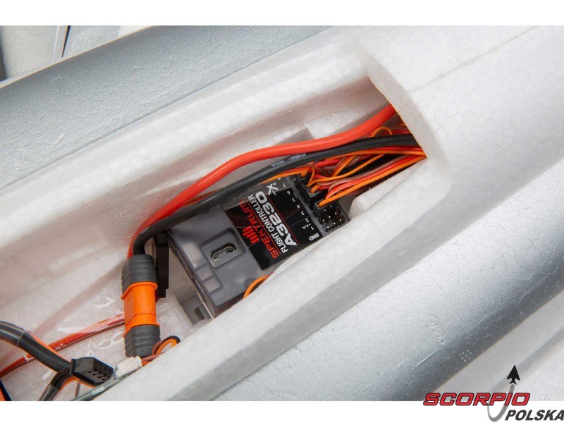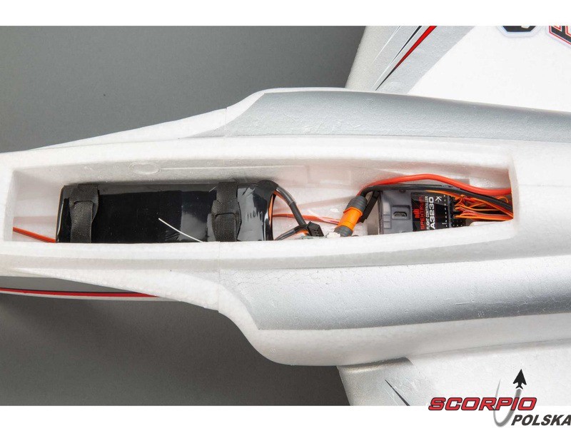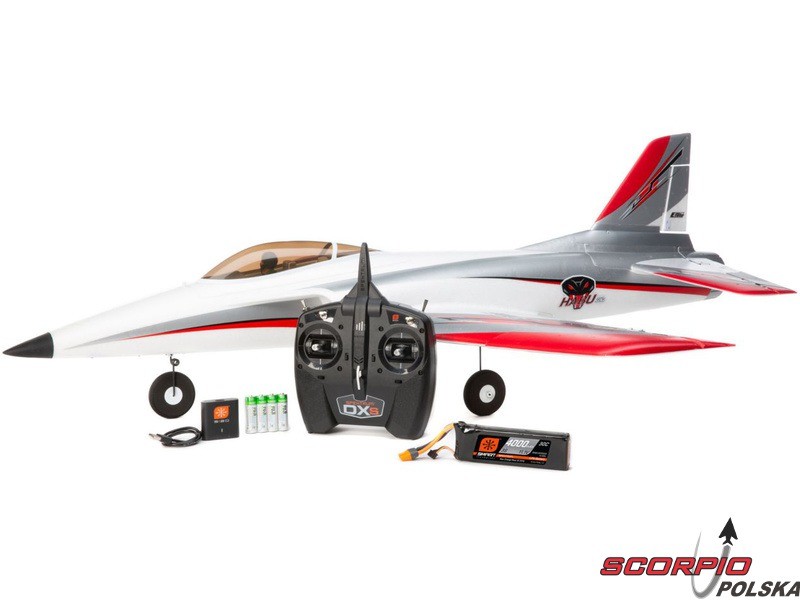 Zestaw zawiera gotowe elementy modelu samolotu RC E-flite®, jet Habu STS z zainstalowanymi komponentami: E-flite turbina 70mm z silnikiem, Spektrum regulator Smart 70A 3S-4S, 2 szt Spektrum serwo A381 9g Mini, kabel 40cm, 3 szt Spektrum serwo A382 13g MG, kabel 24cm.