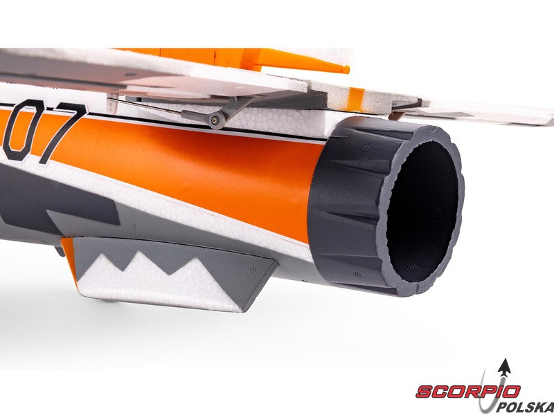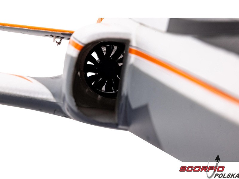 12-łopatkowy wirnik turbiny o średnicy 70 mm w połączeniu z wysokoobrotowym silnikiem bezszczotkowym, regulatorem 85 A i opcjonalnym akumulatorem LiPol 6S 3200-4000 mAh ma bardzo duży ciąg, dzięki czemu model ma niesamowity zakres prędkości z praktycznie natychmiastową reakcją przepustnicy. Ale to, co natychmiast przyciąga uwagę wszystkich, to niesamowity dźwięk wydawany przez ten model - prawie jak prawdziwa turbina.