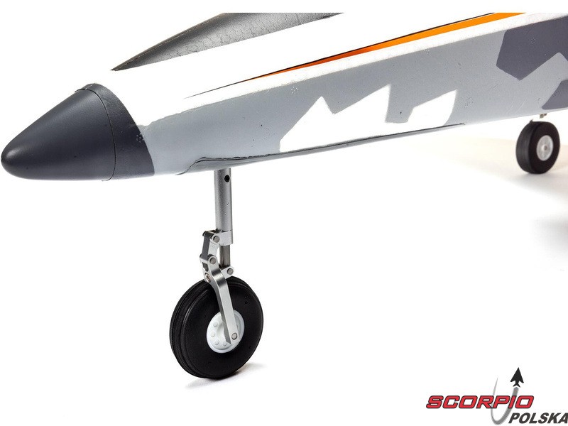 Nie byłby to prawdziwy odrzutowiec, gdyby nie miał chowanego podwozia! Model ma fabrycznie zainstalowane 3-kołowe, elektrycznie chowane podwozie ze sterowaną przednią nogą, co jest doskonałym wyborem dla modelu. Szeroki rozstaw kół zapewnia wysoką stabilność podczas kołowania i doskonałe prowadzenie nie tylko podczas startu, ale zwłaszcza podczas lądowania.