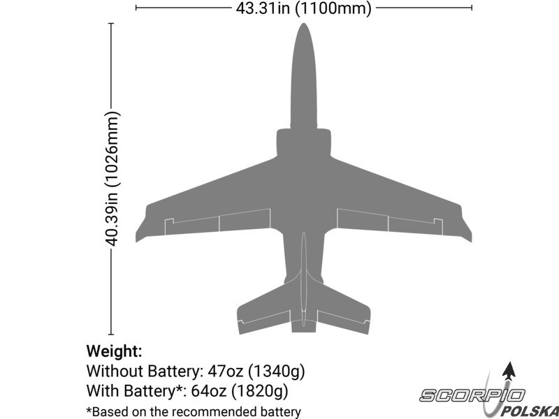 Viper Jet EDF 1.1m ma prawie nieograniczoną moc pionową i możliwości akrobacyjne, które wyróżniają się bardzo eleganckim wyglądem. Zakres prędkości modelu jest ogromny, od minimum na klapach do maksimum na pełnym gazie. Aby wykorzystać te mocne strony, należy użyć wysokiej jakości akumulatorów LiPol, które mogą wytrzymać duże obciążenia prądowe. Akumulatory nie są dołączone do zestawu.