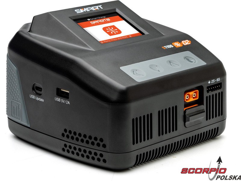 Ładowarka nowej generacji Spektrum Smart G2 S1100 1x100W AC z technologią SMART przynosi najnowsze przyjazne dla użytkownika środowisko, sterowanie przyciskiem, wyjście ze złączami IC3/IC5 oraz wyświetlacz LCD IPS 320×240. Wyjście USB 5V/2A. Nowoczesna ergonomiczna obudowa z gumowymi uchwytami.