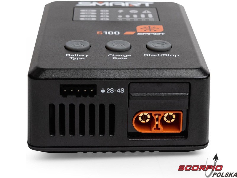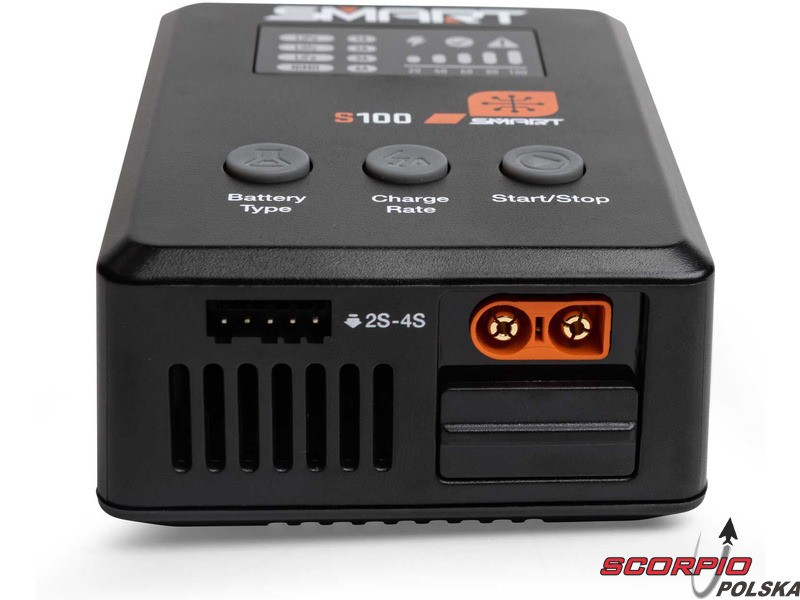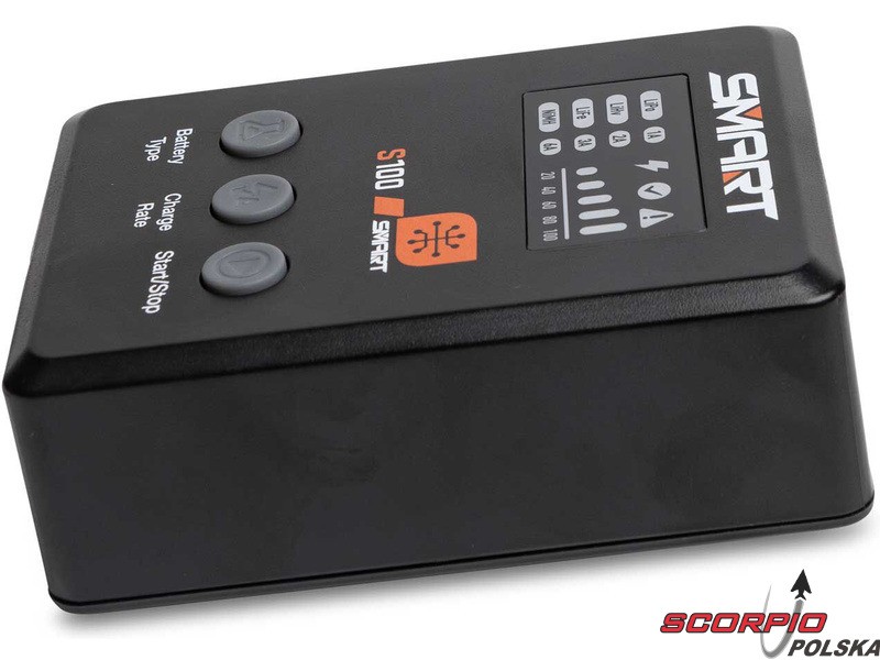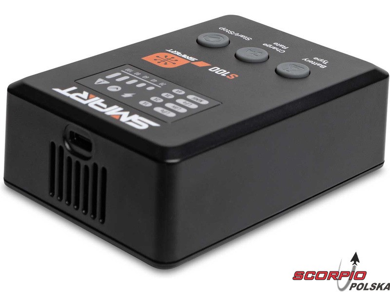 Dzięki mocy do 100 W (65 W z dołączonym zasilaczem), nowemu interfejsowi użytkownika i możliwości szybkiego ładowania akumulatorów Smart na zintegrowanym porcie wyjściowym IC3® lub IC5®, ładowarka S100 oferuje wszechstronne i bezproblemowe ładowanie. Za pomocą ładowarki S100 można ładować praktycznie każdy akumulator LiPol, LiHV, LiFe ze złączem balansującym, akumulator SMART z kablem danych. Ładowarka rozpoznaje parametry akumulatora SMART i automatycznie rozpoczyna bezpieczne i dokładne ładowanie po podłączeniu. Korzystając z ładowarki z akumulatorami Smart, użytkownik będzie zaskoczony jej funkcjonalnością i wydajnością.